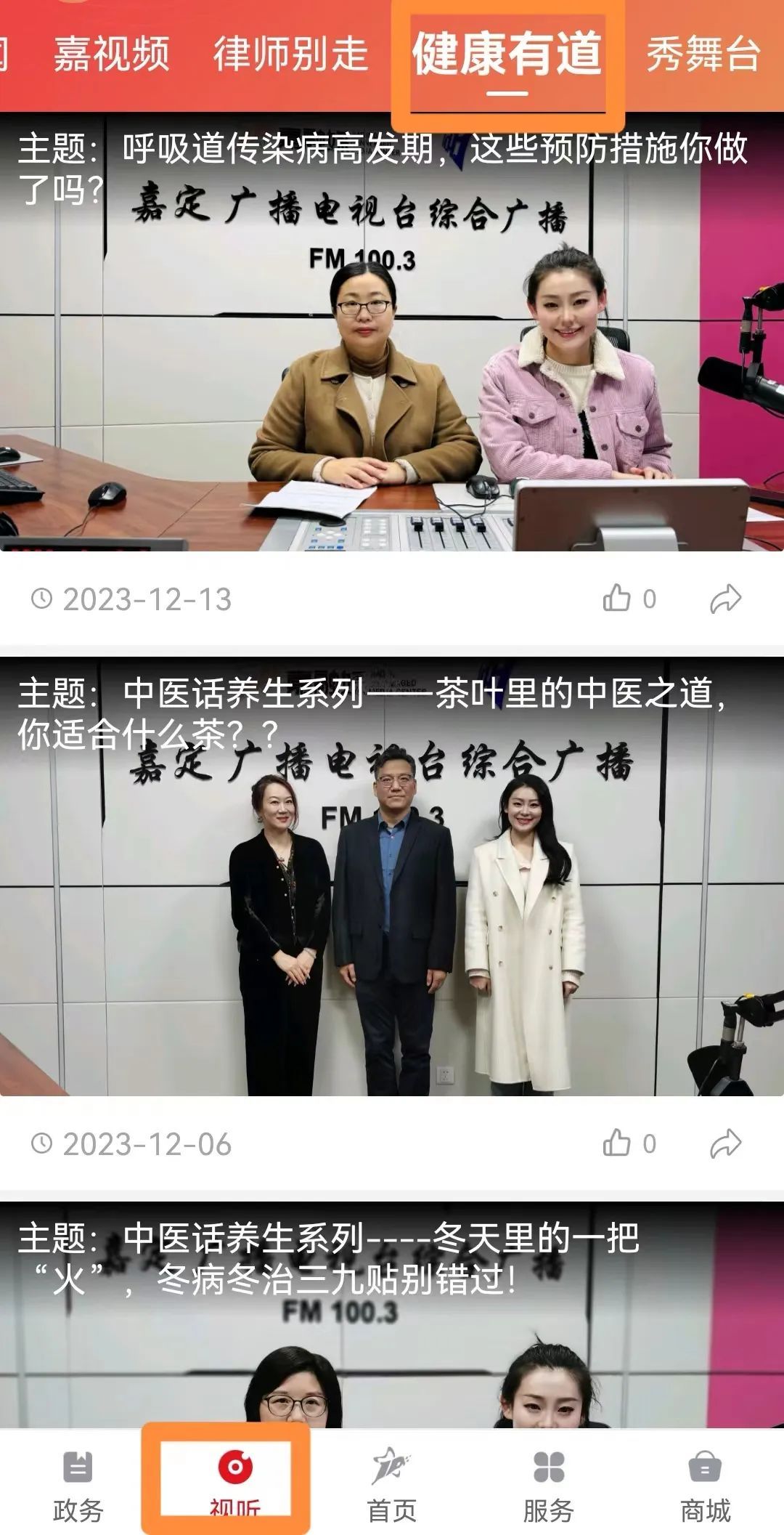 点击“视听”按钮找到“健康有道”,