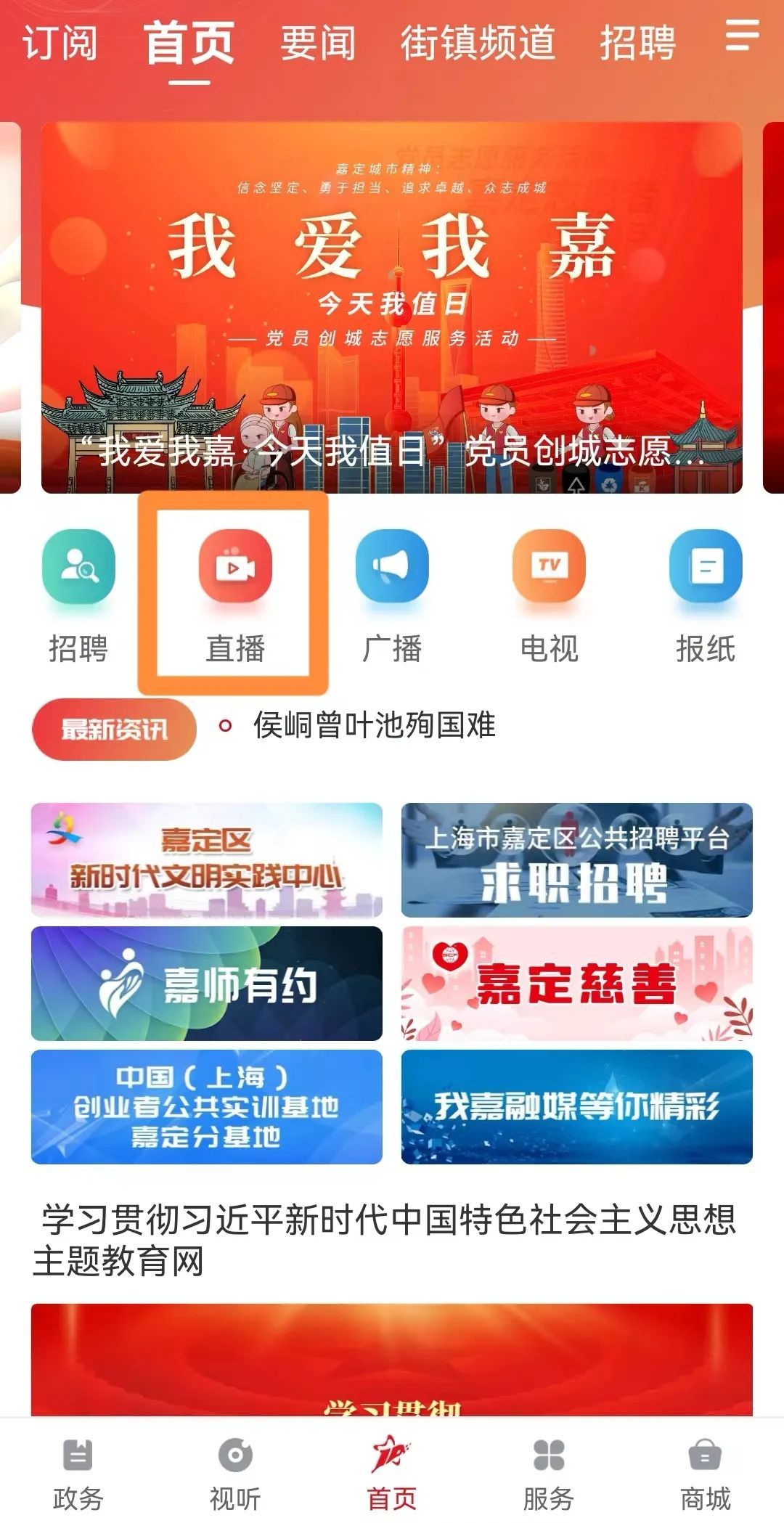 在“上海嘉定”APP首页中,