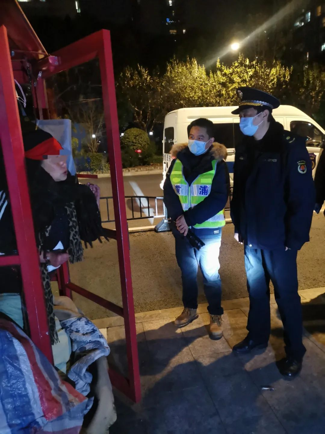 12月15日,黄浦区组织召开“寒冬送温暖”专项救助行动部署会的当天晚上,也是上海入冬以来首个寒潮袭击申城。为做好针对流浪乞讨等生活无着露宿街头人员的救助管理工作,区民政局联合区公安、城管部门到新闸路绿地、延福绿地、豫园等地开展街面巡查,对3名露宿街头人员进行了站外救助,发放棉被2条,方便面3盒。对2名长期露宿在延福绿地的流浪乞讨人员进行了及时救助,1人因行动不便送医救治,一人带回站内救助。当天夜晚,上海市救助管理站领导带队一起参加了寒夜巡查专项救助行动。