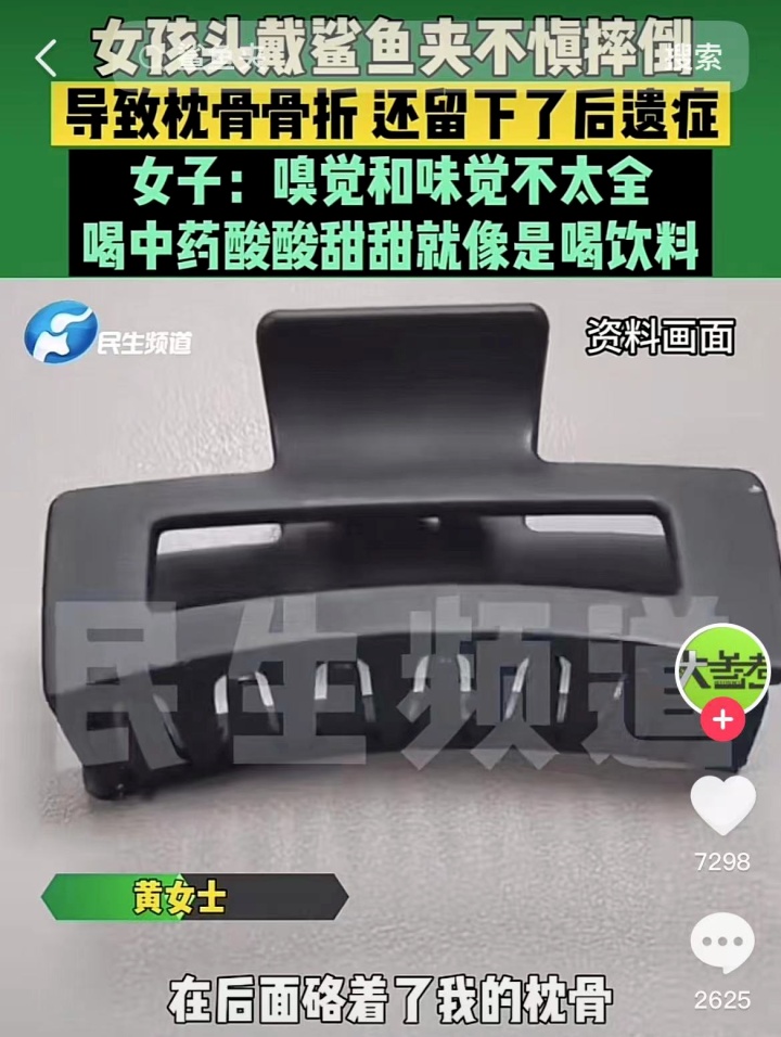 黄女士戴鲨鱼夹不慎摔倒