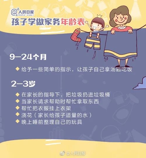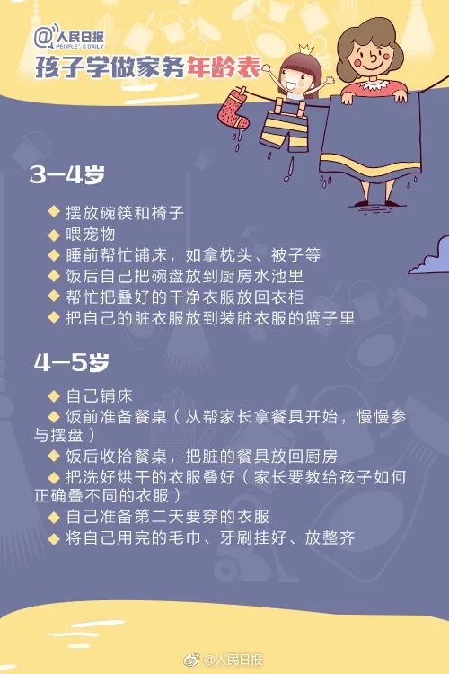 人民日报也曾推荐过孩子做家务年龄对照表,各位家长可以参考执行。