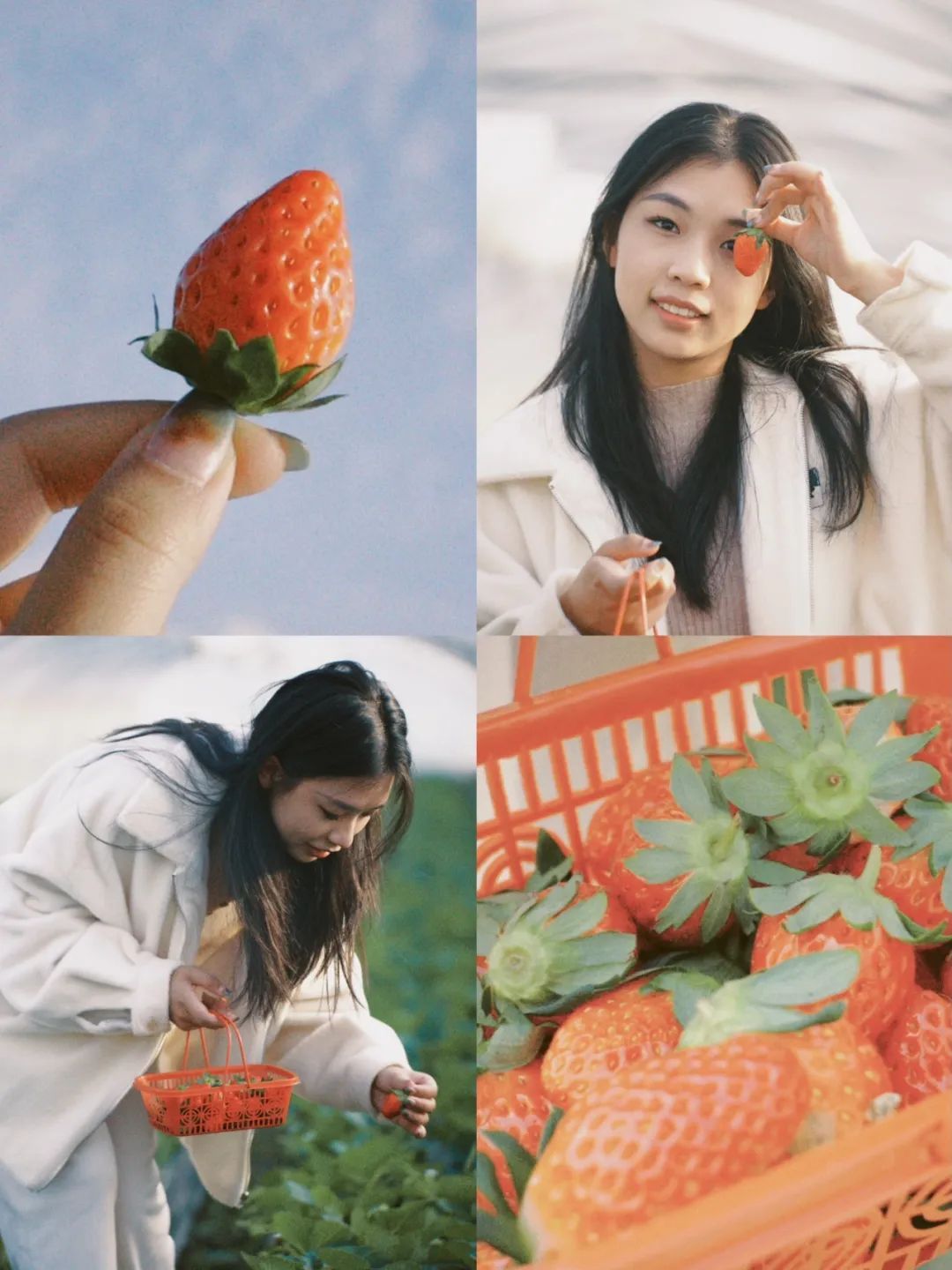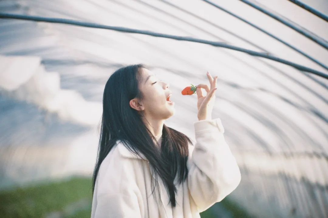 STRAWBERRY “ 在寒冷的冬天除了初雪 最让人期待的就是草莓 酸甜之中跳跃着喜悦 带给我们如少女般的美好 朋友圈的草莓季甜蜜开启 不够唯美?跟着小编一起拍 ” 草 莓 季 来 了 前期准备 服装偏小清新,推荐浅色系,草帽、白衣、小篮子等都是出片道具,森系小方巾可用。 取景技巧 如果没有蓝天,草莓棚也是很好的取景地。可以利用草莓垄这个天然线条,采用引导线构图拍几张;利用狭长的大棚,拍出延伸感;拍一些特写,比如摘草莓手部特写,吃草莓俏皮可爱的模样…… 小tips 不要忘了拍一些细节图使得照片更丰富有层次:装满草莓的篮子,挂满草莓的田地,手捧草莓的画面或者摘草莓的细节图,后期拼图拼在一起,就很有氛围感。 ,时长 是不是迫不及待想去给自己拍一组 可以霸屏朋友圈的美照 海湾镇的奶油草莓 可以现场采摘打卡哦 ❤ 甜甜草莓季 新鲜上市 —— 星辉草莓园 地址:海湾镇海兴路1393号(往东300米右转草莓大棚) 电话:18019204330