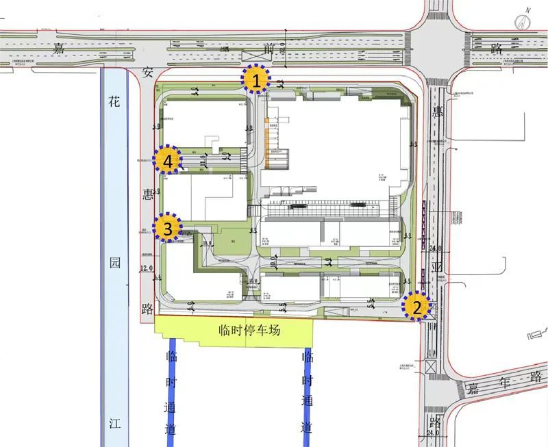 嘉定山姆会员商店位于南翔镇惠亚路117号地块东北侧,地块东侧为支路惠亚路,南侧为上海市消防总队嘉定支队南翔中队,西侧为支路安惠路,北侧为次干路嘉前路。经测算,新店开业后,经沪宜公路、嘉闵高架转嘉前路方向,沪宜公路(嘉程路-翔江公路)、嘉前路(惠申路-惠亚路)双向易出现车辆排队情况,交通优化方案如下↓