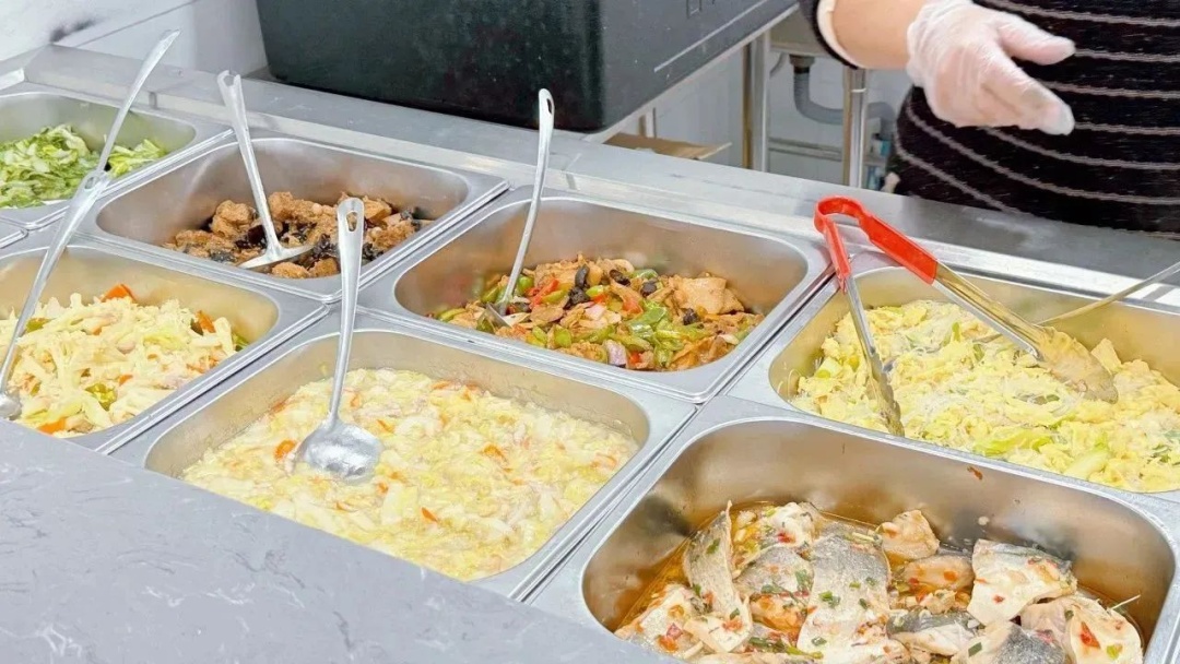 临近中午,不少周边老年居民来到服务站的睦邻小厨,吃上一顿热腾腾的午餐。睦邻小厨提供10余种营养丰富的菜品和免费例汤,居民们可堂食也可自带餐盒打包回家。