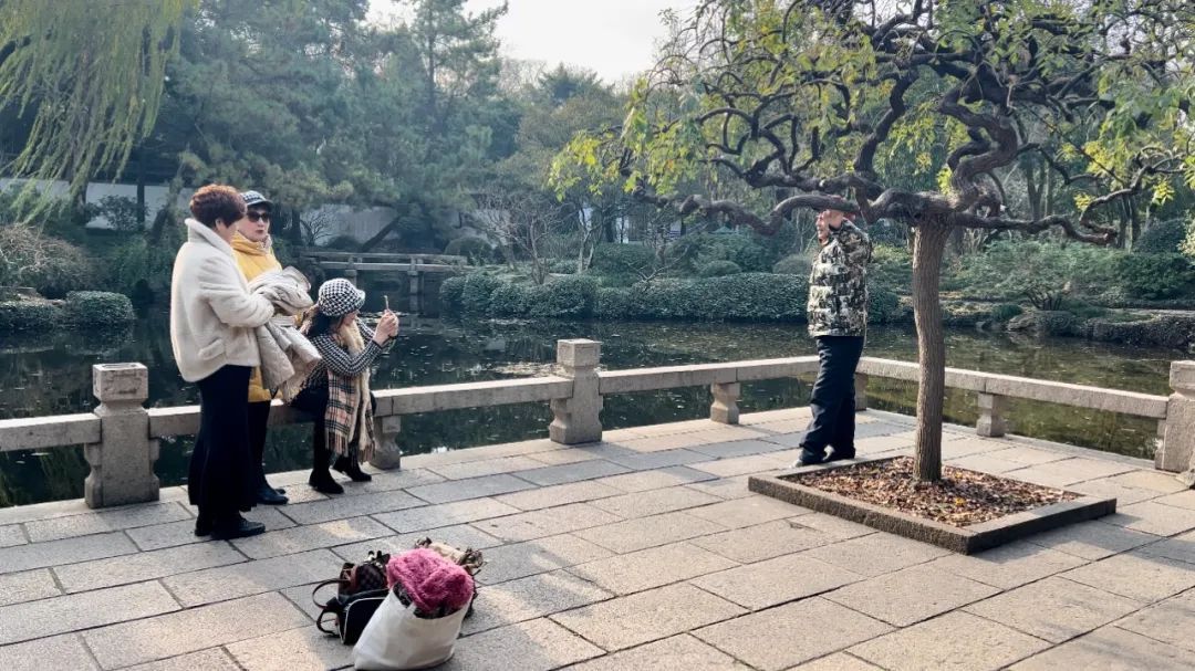 9点过后太阳“露头”,气温逐渐上升。在秋霞圃,不少市民游客漫步园林,趁着难得的晴天暖阳拍照打卡,散步聊天。“今天难得天晴,和老朋友们出来散步拍照、晒晒太阳心情蛮好!”市民单阿姨开心地说。