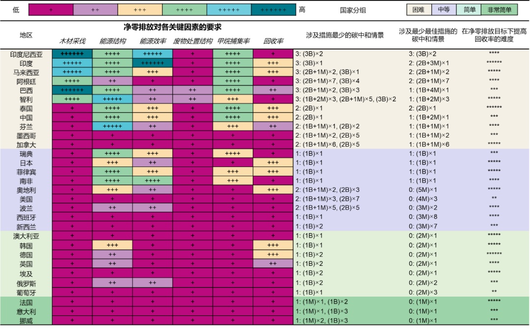 图4. 2050年各国造纸行业净零排放策略分析