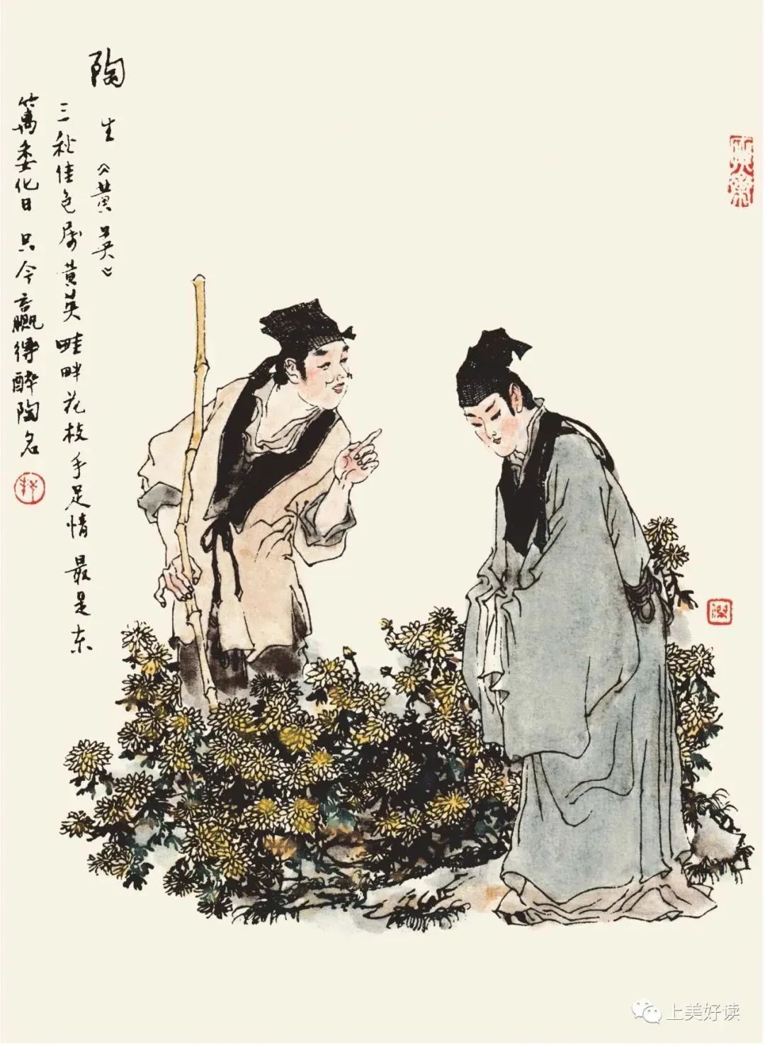 马家世代养菊,到了马子才更是爱菊如命。一旦听说有好的菊花品种,马子才就毫不犹豫不远千里去采购。一次,马子才在南京买菊种,结识了陶三郎,攀谈之下,得知陶生对养菊很精通,两人相见恨晚。马子才听说陶生姐弟要搬去北方,便把他们邀至家中闲置的荒园居住。陶生和姐姐黄英都擅长养菊,哪怕枯萎的菊花,也能让它死而复生。陶生见马家生活清贫,就建议马子才卖菊致富。马子才听了很失望,鄙视道:“种菊赏菊,是高雅之举,如果以此谋利,非君子所为。”但陶生认为贩花为业,是自食其力。两人不欢而散。此后陶生经常捡马家弃而不用的菊花残枝,培育成精品菊花,等到秋天,奇异的菊花品种,吸引很多人来购买,没几年就富甲一方了。后来,全部家产交由姐姐管理,陶生日日饮酒下棋赏花,日子过得逍遥自在。一次,陶生喝醉,一头栽倒在地,化为了一株高大的菊花。马子才吓坏了,赶紧告知妻子黄英,黄英拔出大菊花,给大菊花盖上了衣服,告诫马子才不要看。第二天大菊花又恢复了人形,马家夫妻这才知道这姐弟俩是菊花精所化。姐弟俩身份暴露后,陶生喝酒更加放纵。百花节那天,陶生醉死就变不回人了。黄英地伤心掐下大菊花一段菊梗,日日浇灌,渐渐地开了花,竟还有酒香。
