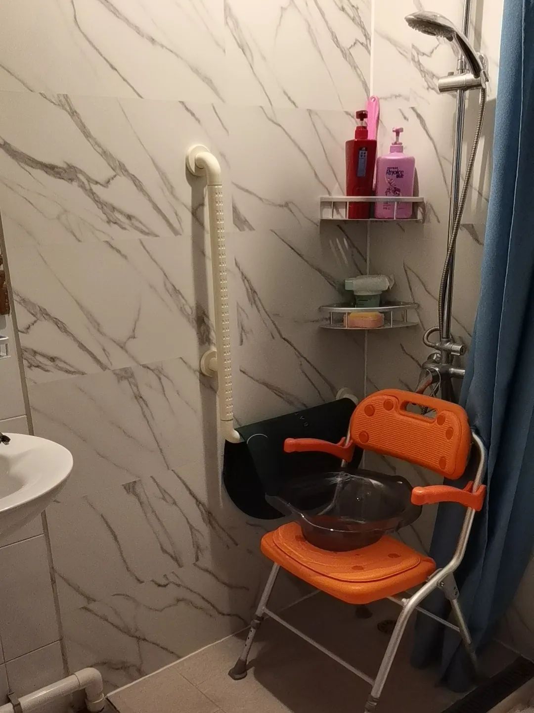 可折叠淋浴凳、智能马桶盖、单边U型上翻扶手、无线声光门铃……一件件不起眼的小设施,却能解决家住大宁路街道延长新村居民区的顾伯伯“如厕难、洗澡难、生活难”等实际问题。顾伯伯属于纯老家庭老年人,还可以获得“暖心补贴”。“这些设施减少了我不少生活困扰,以后再也不怕在浴室磕碰摔倒了。”顾伯伯高兴地说道。除了顾伯伯申请的基础改造,居家环境适老化改造项目还提供浴改淋、厨卫整体改造等“进阶套餐”。“老两口在家就怕洗澡的时候摔跤,我年纪也大了,扶不住我老伴了。”家住540弄居民区的张阿婆年近80岁,老伴平时行动不便需要坐轮椅,以前安装的浴缸成为影响他们洗澡的最大难题——浴缸本身带有一定的高度,每次洗澡老人都要像“跨栏”一样,这让老两口感到非常苦恼。