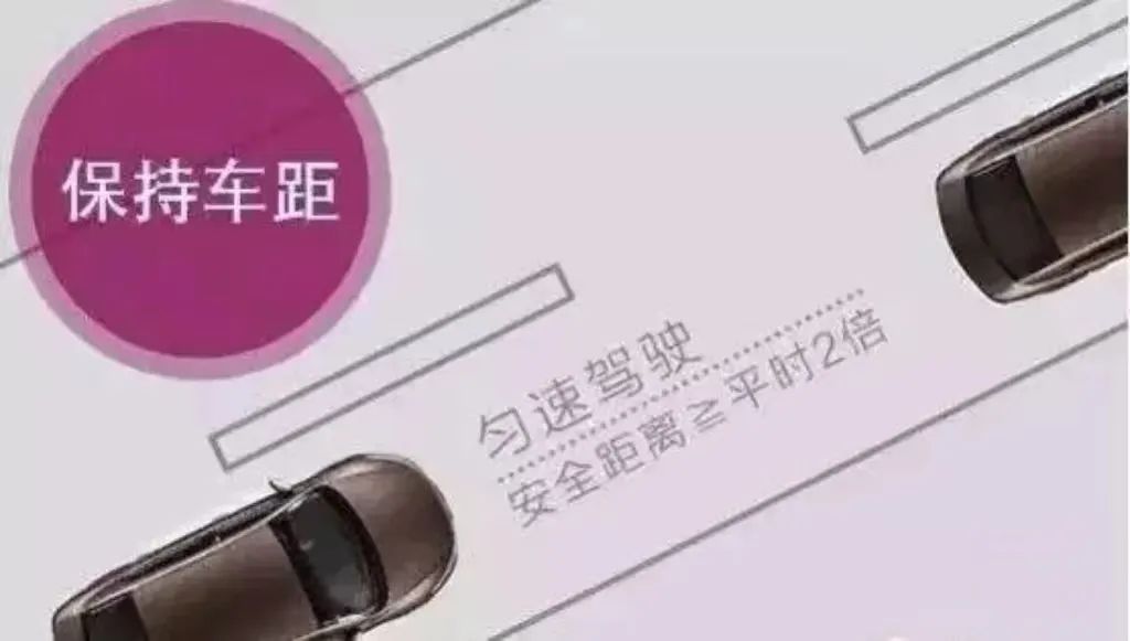 与前车的距离最好保持平时两倍以上,以防遇到紧急情况时,可以有充足的准备时间,避免发生追尾等事故。