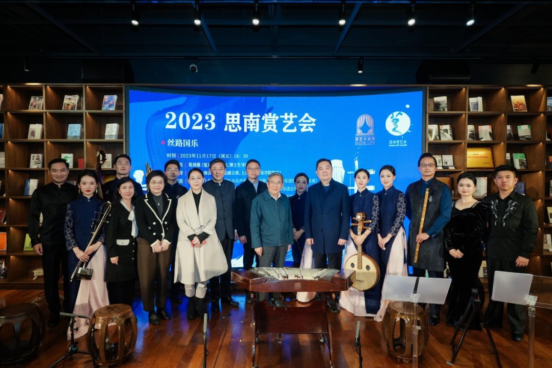 2023年恰逢“一带一路”倡议提出十周年,第六届“思南赏艺会”围绕“丝路国乐”,在复旦大学历史学教授、博士生导师葛剑雄的导赏中开启首场演出,上海民族乐团演奏家们跨界携手中西艺术名家,以“丝路国乐”“楼兰箜响”“相遇品弦”“铮琮百弦”“琵琶丝语”“弦音弦路”“摩登唢呐”“笙琴并茂”8场颇具创意的艺术分享活动,聚焦丝绸之路上的东西方音乐文化的交流,向观众们展现“一带一路”上民族乐器的融合与发展。