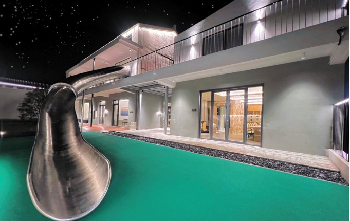 二楼阳台延申下来的超大滑梯,就似一条时光隧道,让你找回儿时的天真烂漫。民宿共有7间客房,房间的命名也颇具趣味,当客人在办理完入住之后,将会拿到一张带有谜面的房卡,住客需要解答谜底, 才能找到属于自己的房间。