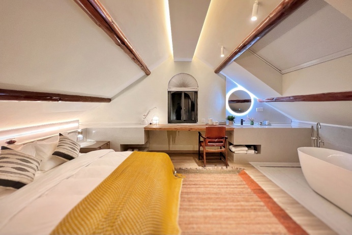 这里,远离城市的喧嚣陶然坐观于乡居,水中倒影相随,树荫亲子相伴!久居逸不仅沿袭了一期久居开心农场设计方面的优点,在室内做了更大的开放式设计,让人与人交流空间的布局更显温馨亲密。客房风格活泼灵动,凸显时尚与安逸,圆拱形门将休息区与卫生间隔离开,少去了宾馆的呆板生硬之感。通透的玻璃,窗外景色尽收眼底,白天亲近自然,尽享当下;夜晚,露台上月朗星稀,小酌怡情,享受宁静。
