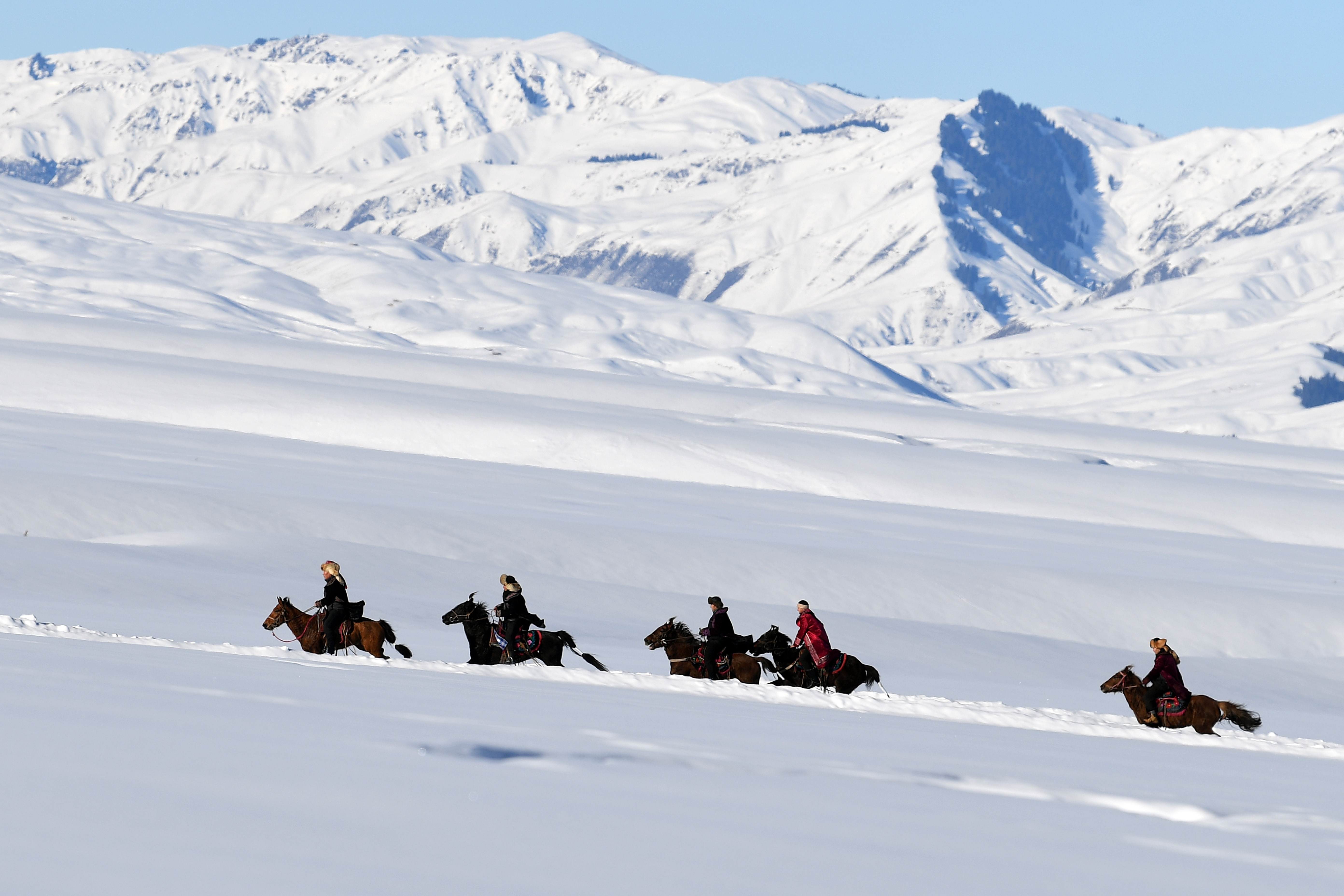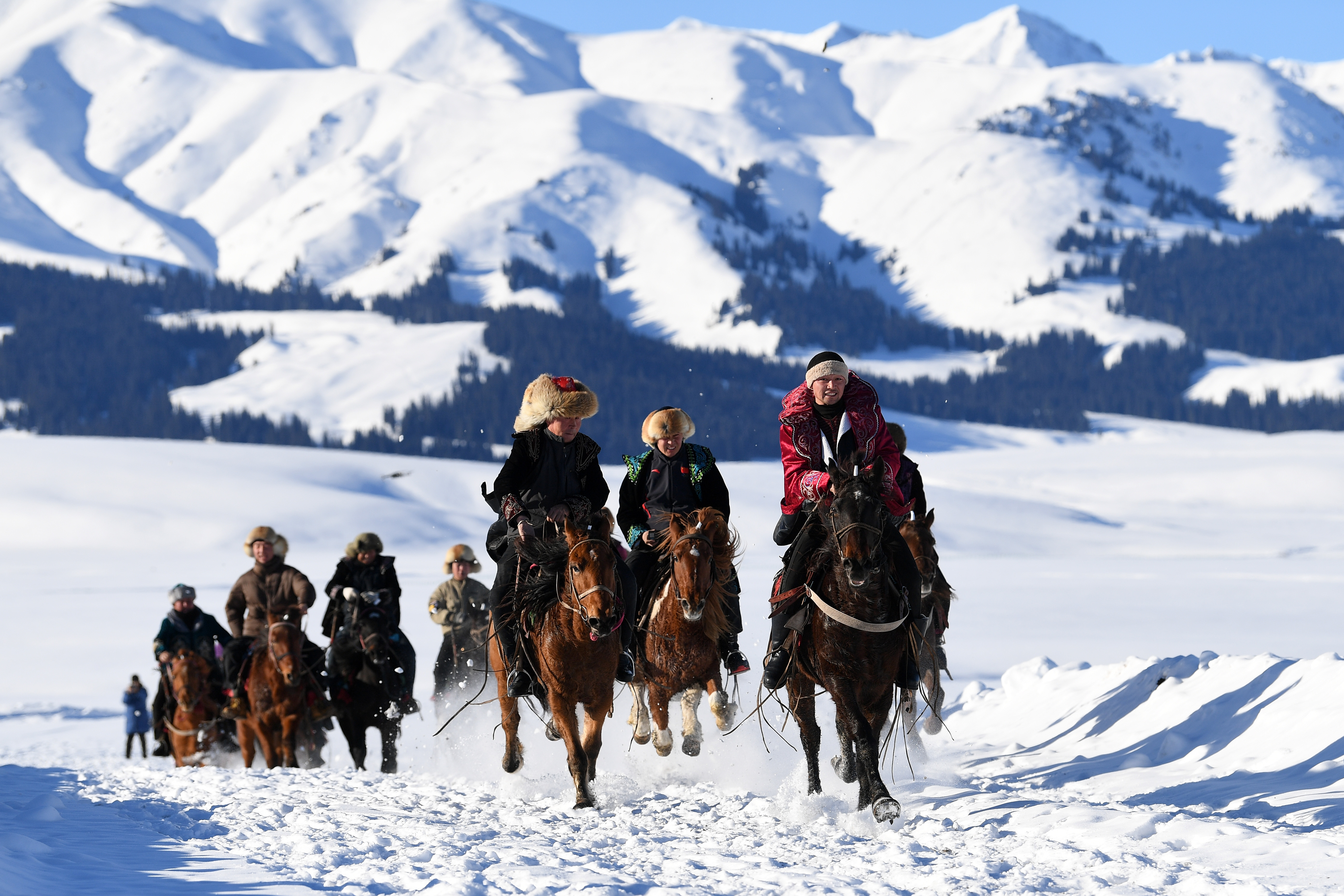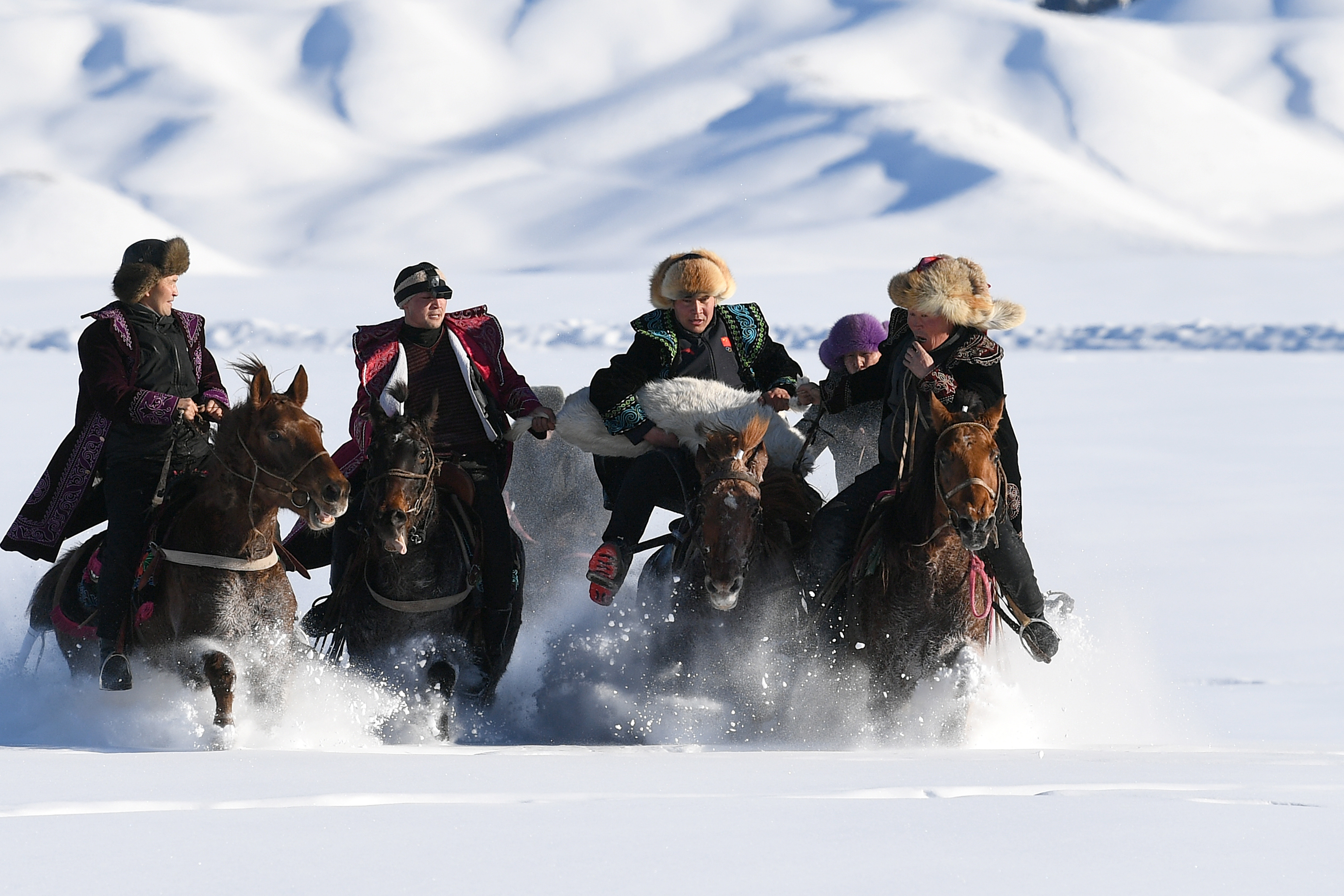 赛马、马拉爬犁、叼羊……今年冬天,景区内的天牧台民俗婚礼体验区增加了许多娱乐项目,满足游客的多元需求。