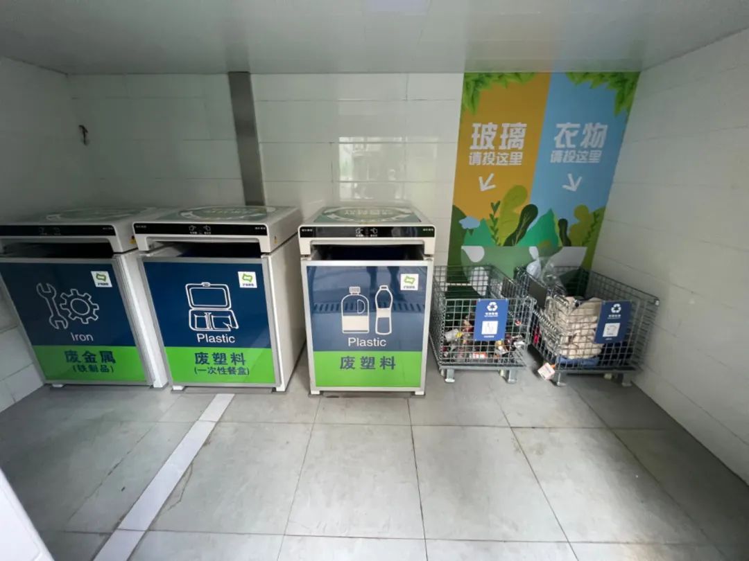 此外,彭浦镇根据小区居民的日常投放习惯及需求,对收集容器再进行细化,除了传统的玻、金、塑、纸、衣外,设置单独的“一次性饭盒”“铁制品”收集容器,进一步提升小区内可回收物细化分类的管理效率。同时,通过智能回收箱的引入,为居民提供人性化服务,激发居民对可回收细分的热度,使资源循环利用和绿色低碳环保理念更加深入人心。
