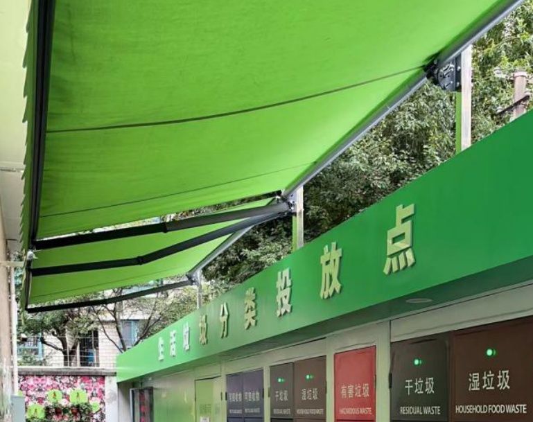 同时,垃圾箱房的惠民设施进行了细化完善。此次3.0版生活垃圾箱房采用了全新的设计标识,对箱房的外立面进行重新覆膜;对垃圾房北侧的小区公共绿化区域进行隔断并加装不锈钢门,完善垃圾房点位的封闭式围护结构;优化投口面积及高度,采用非接触式智能感应投口,方便居民投放;增设雨棚,换装太阳能照明系统,提升居民投放的便利性;增设有害垃圾精细化分类收集容器;增设排风扇、空调、臭氧设备、净味设备;箱房正对的围墙设置成垃圾分类宣传墙,既美观又起到宣传作用,营造了温馨舒适的投放环境。