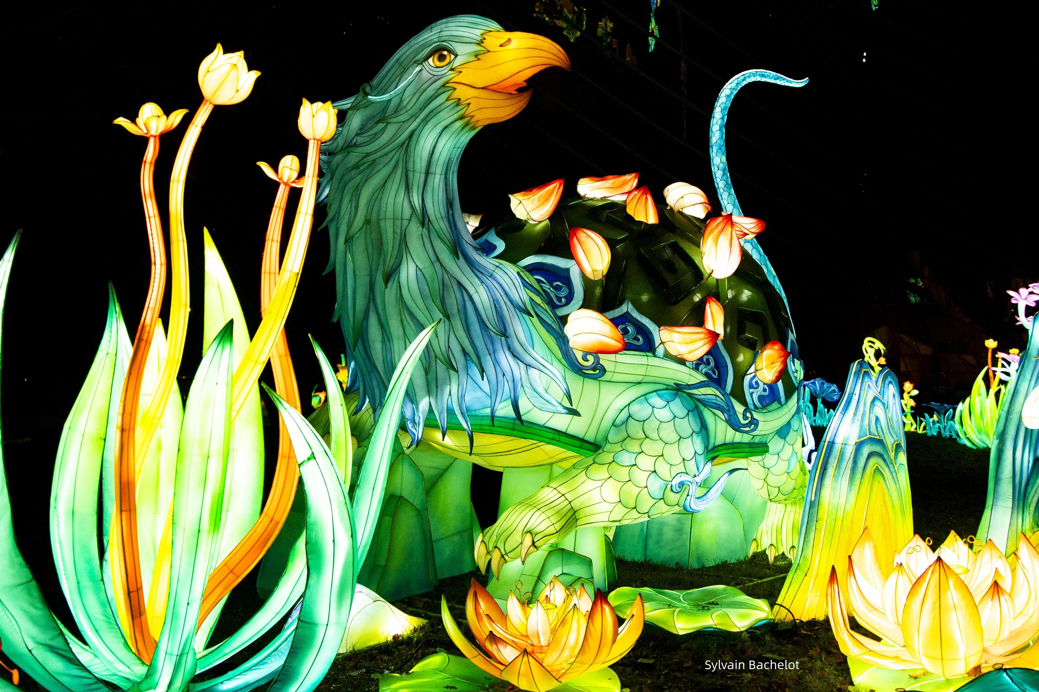 当来自中国的60架大型灯组和2000余盏华灯在法国巴黎同时亮起,造型各异的“龙”图腾、《山海经》中的瑞兽奇珍,以及各式五彩斑斓的光影图卷,共同构成了一个璀璨炫目的奇幻世界,向法国民众们展示东方生活美学的独特魅力。