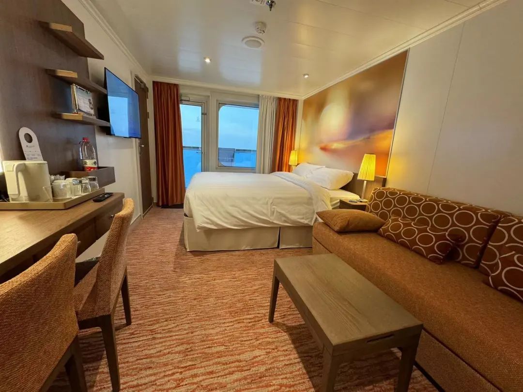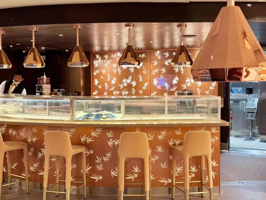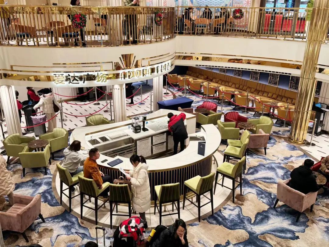 一进来就是爱达广场,旁边是客户服务中心,广场有休息的沙发和吧台