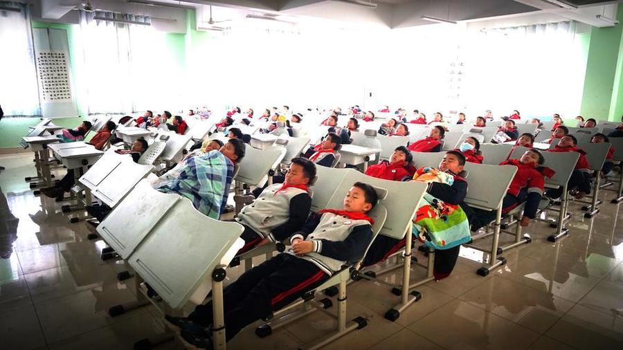 湖南株洲醴陵茶山镇梅霞完全小学学生在校午休。图片来源:央视新闻