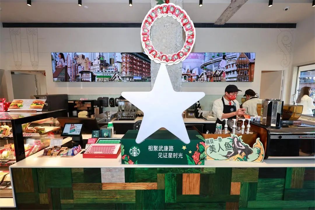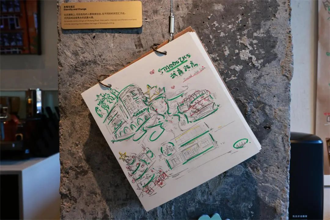 这是属于美人鱼与顾客的专属互动空间,美人鱼诉说着她在武康路的时光,同时也倾听着到访武康路星巴克的顾客们的故事。
