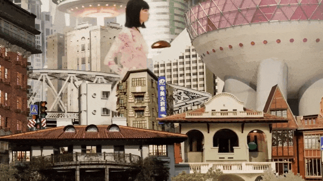 吧台背后墙面新设的电子屏上,形形色色的人在武康大楼、武康路以及外滩的历史建筑间穿行,人们在不同的时间交汇于此,讲述着这座城市百年岁月变迁的故事。