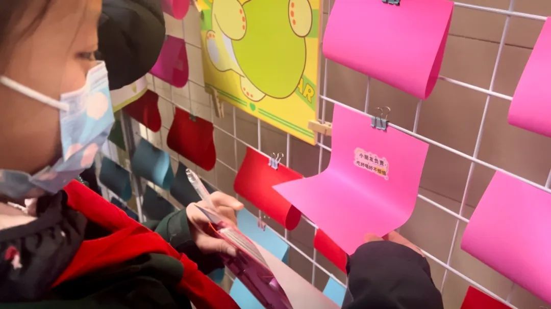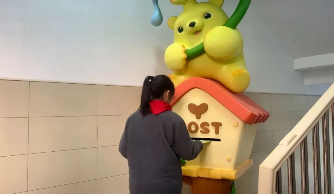 萌芽熊信箱的开启掀起活动的高潮。同学们迫不及待地选择和自己心情对应颜色的信纸,认真写下成长的“密语”,并小心翼翼地投入信箱。