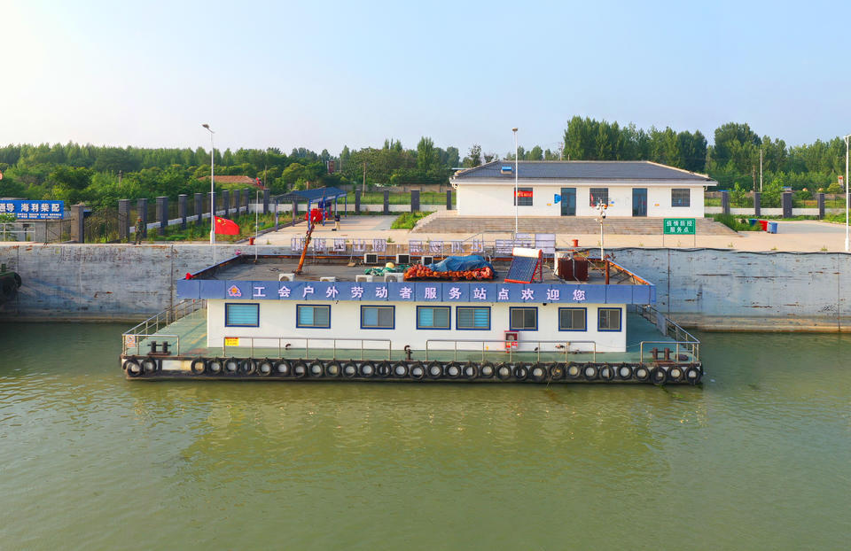 京杭运河穿微山湖而过,在微山段形成了130多公里的“黄金水道”,催生了水上运输业的繁荣。为更好服务以船为家、枕水而梦的船员等劳动者,微山县今年先后依托微山县运输局高楼站和韩庄站,设立了户外劳动者服务驿站,常态化为广大船员提供航路问询、热水供应、急救药箱、工具箱等暖心服务,并免费提供劳动保障、法律援助、心理疏导、学习培训等方面服务。驿站自建成以来,已服务过往船只360余艘,船员930余人次,成为了广大船员的避风港、“暖心之家”。