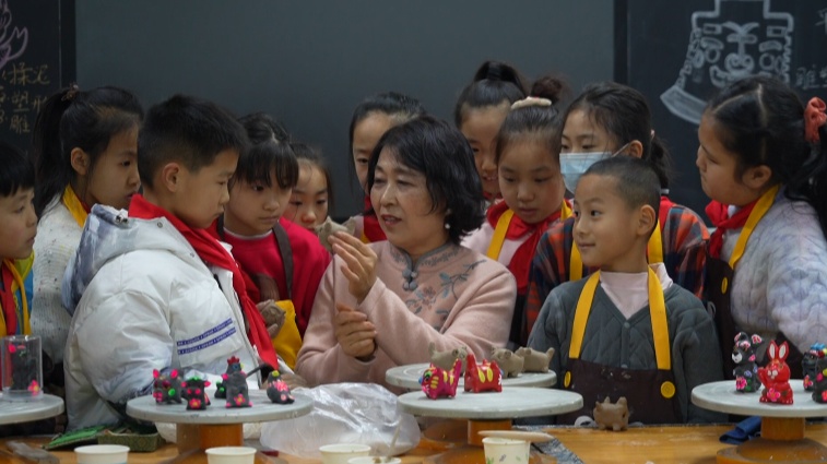 “小朋友们大家好!这个是泥哨用泥巴做的,能吹响。今天呢,咱们来学习捏制‘小老虎’……”12月26日,枣庄市非遗泥哨传承人郭红艳在薛城区黄河路小学陶艺社团教室内向学生们传授非遗泥哨的制作技艺。