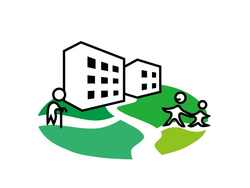 Logo由单位建筑、绿地、市民组成。单位建筑是常见的办公楼样式;绿地的不同色块代表丰富的景观、包容多彩的城市,绿地各个出入口都向城市打开;市民代表了不同年龄段人群,脸上洋溢着笑容,尽情享受着这片公共空间。