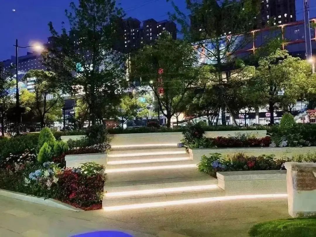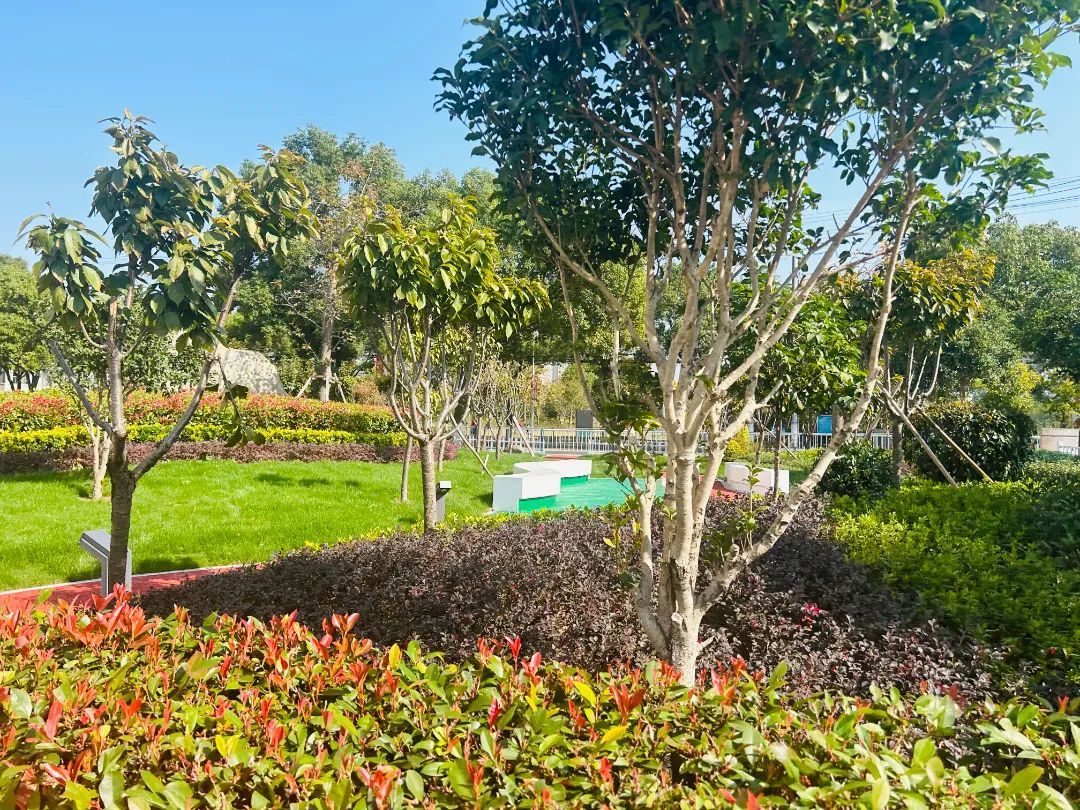 此次改造提升增设了不少景观照明设施,拓宽了园路,增加了坐凳,植物配置上更是添置了多种色叶或开花植物,丰富了绿地景观面貌,扩展了休憩和赏景功能,方便周边市民随时进入游赏。