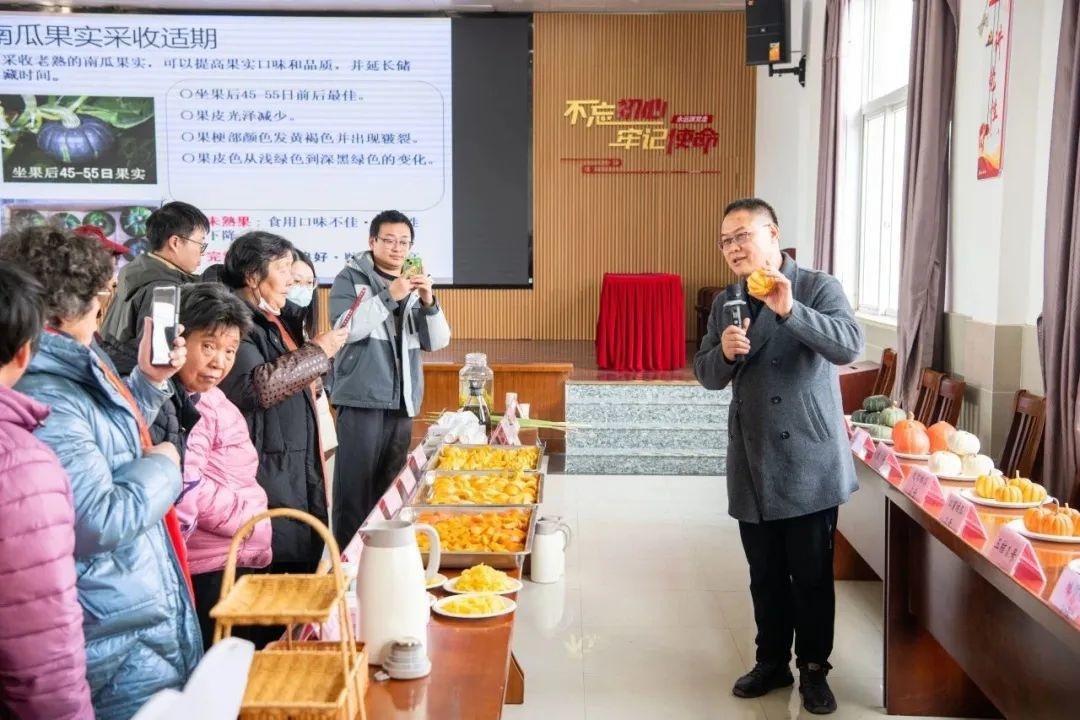 “大家可以来看这里,这边展示的南瓜都是我们农科院精心培育的品种,有些甜度能达19度……”12月27日,上海市农科院园艺研究所药食同源植物研究团队负责人、高级农艺师马坤在金山区漕泾镇学生校外劳动(金光村)实践基地,向漕泾小学的学生以及金光村的村民们介绍了迷你桔瓜2号、灰背1号、双色玲珑等20个南瓜品种,并向大家科普了高效栽培南瓜的方法。 据了解,今年11月,金光村与市农科院园艺研究所药食同源课题组达成合作,约定未来一年将根据“洁美乡村”“小四园”建设需求,为金光村提供特色蔬菜及中草药景观化种植、生产、应用的技术示范和科普培训服务。 现场,金光村村委会还邀请大厨为大家准备了“南瓜盛宴”,有南瓜饼、南瓜盅、南瓜糕等多款以南瓜为主的美食。 “没想到玉米排骨汤放在小南瓜里面吃别有一番风味,南瓜又甜又糯,我也想在家里种这个小南瓜。”金光村的沈阿姨和她的同伴正品尝着最受欢迎的排骨南瓜盅,并对这份南瓜盅赞不绝口。 当天选用的南瓜食材都是由市农科院园艺研究所培育成熟的果实,此外,市农科院园艺研究所还带来了柠檬马鞭草茶、柠檬香茅茶、草莓薄荷茶等中草药特色茶饮。 一同品尝过美食之后,漕泾小学的学生们开展了“金呱呱”农耕课程体验活动。在老师的带领下,大家一同学习制作南瓜饼,一双双小手很快把南瓜面团捏成了形状各异的南瓜饼,欢声笑语不断。 “我们平时看到的南瓜品种就是最常见的那些,没想到南瓜还能长出这么多特别的形状,还有像‘丑小鸭’的。”学生们品尝着自己亲手制作的南瓜饼,纷纷表示,通过今天的活动更加深了他们对南瓜的认识。 “南瓜是我们接下来引导村民有序种植首选的农作物,可食用、可观赏,颜值高也容易打理,如果有村民愿意栽种,市农科院也会给他们提供南瓜苗和技术指导。”据金光村党总支书记、村委会主任张红介绍,金光村将结合“洁美乡村”建设,积极与市农科院园艺研究所沟通协作,打造以南瓜、中草药种植为特色的“小四园”,装点周边环境、提升村容村貌的同时,也能带动村民增收,让宅前屋后的一方土地变为村民的“香饽饽”,赋能乡村振兴。 通讯员 | 杨阳 摄影 | 毛文轩 编辑 | 王曼(实习) 责编 | 潘婷 何小燕