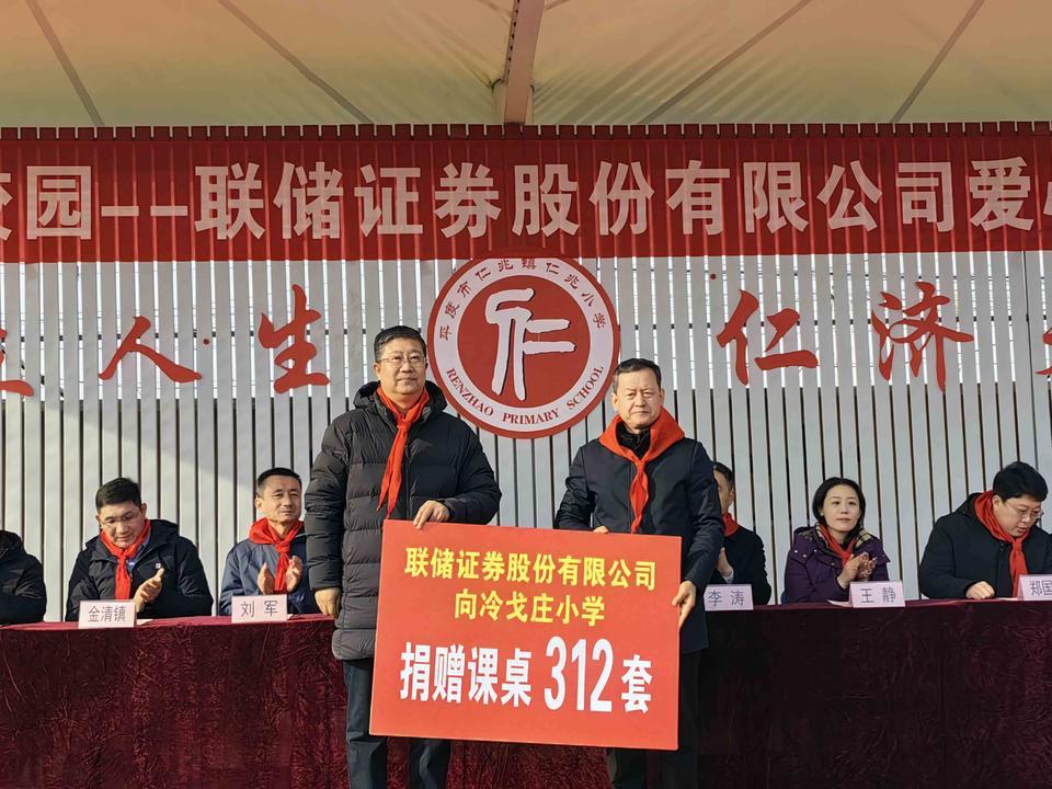 联储证券股份有限公司通过乡村振兴教育帮扶工作,向仁兆镇辖区内小学爱心捐赠学生桌椅608套(其中仁兆小学296套,冷戈庄小学312套),价值15.2万元。希望通过改善学习环境,培养孩子们更好的学习兴趣,让他们在爱的土壤中茁壮成长。