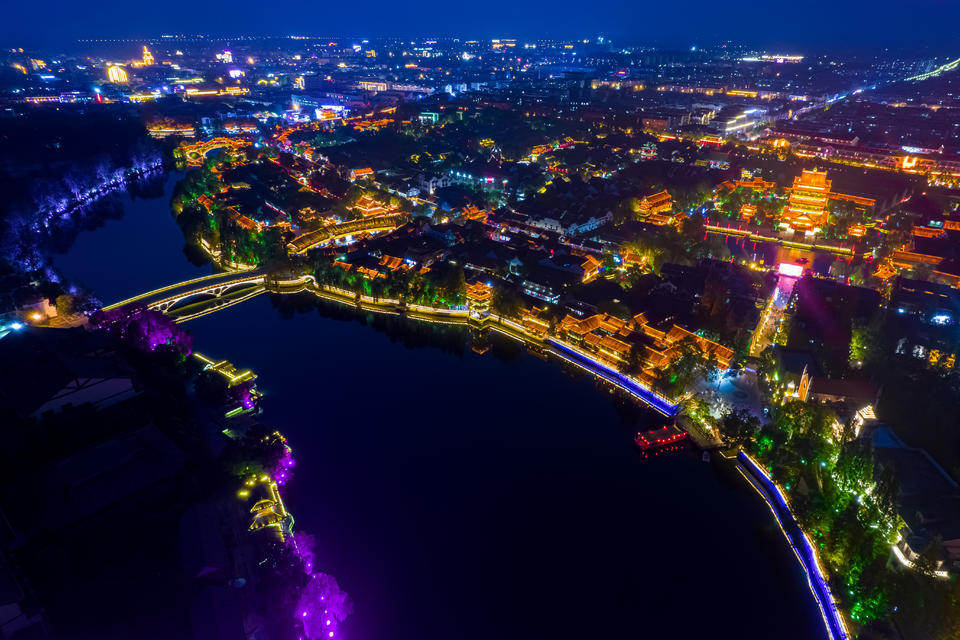 盛世欢腾,鼓韵铿锵。元旦前一天,在复兴广场举行点福灯仪式。《盛世鼓运》作为序幕,嘉宾启动的宫灯飞至复兴楼,点亮主题花灯及复兴楼。在郁家码头点亮大型花灯处,演员们翩翩起舞。赏花灯、观演艺、乘游船、夜游园,“节庆、非遗、民俗、运河”四大主题融合演艺均匀分布全城。