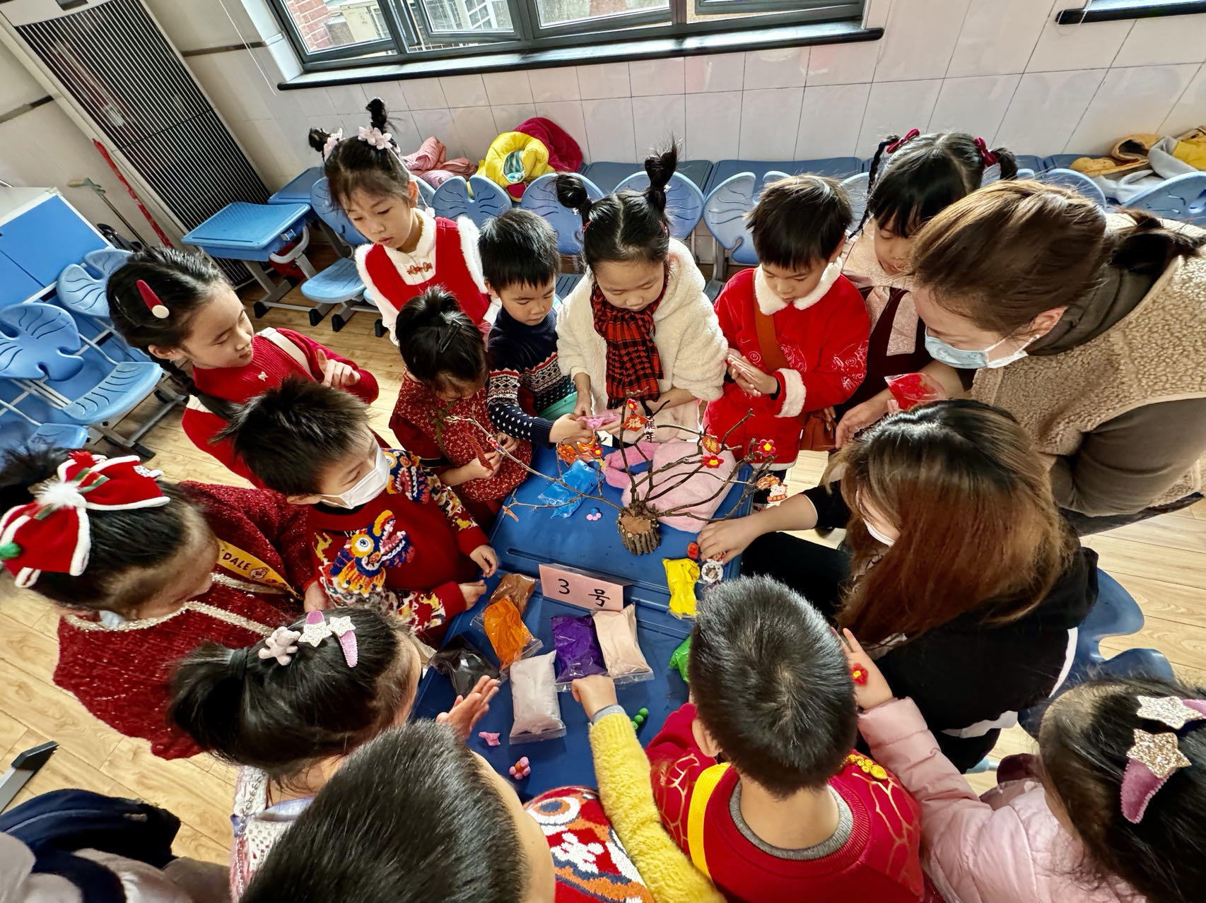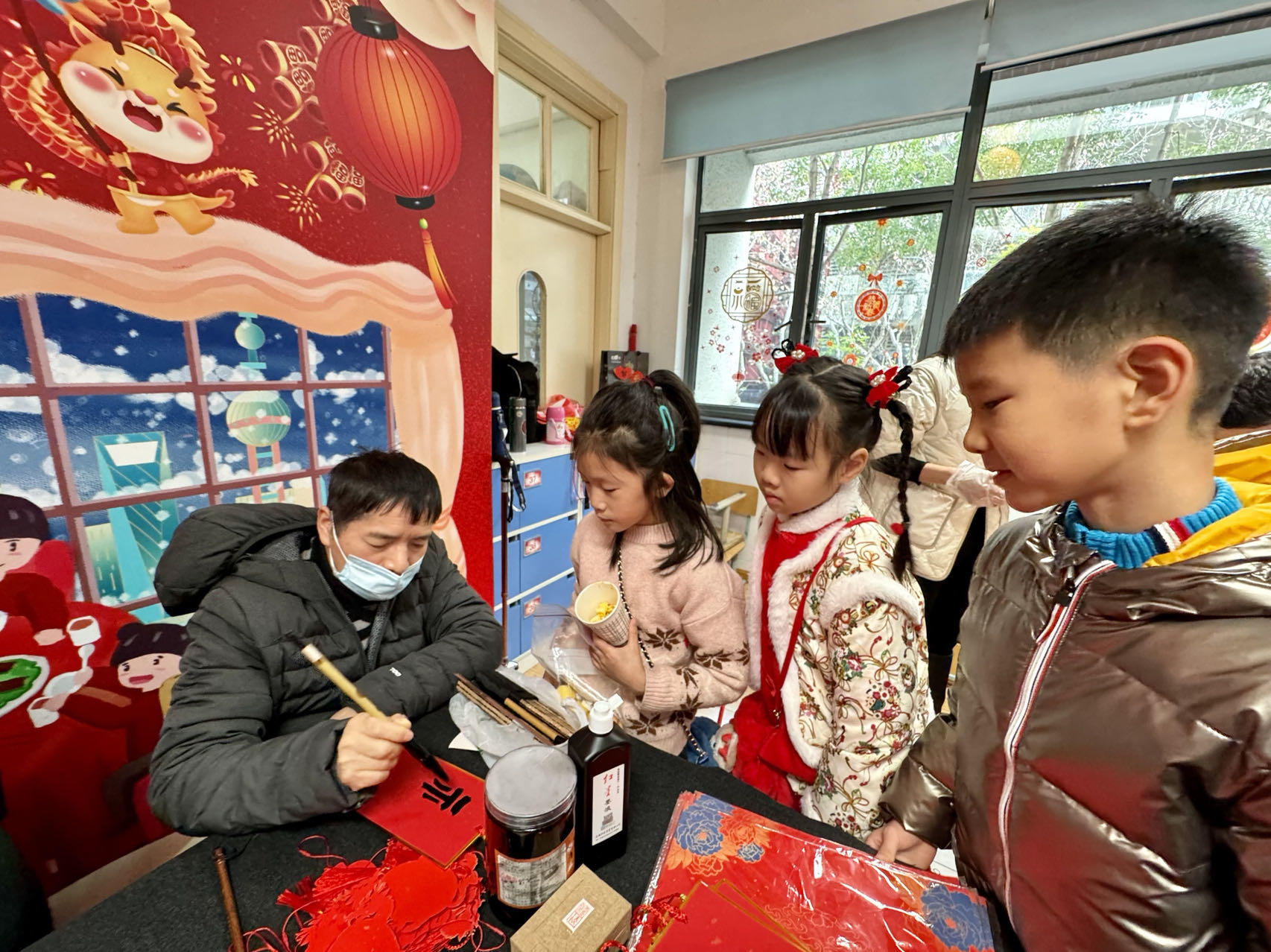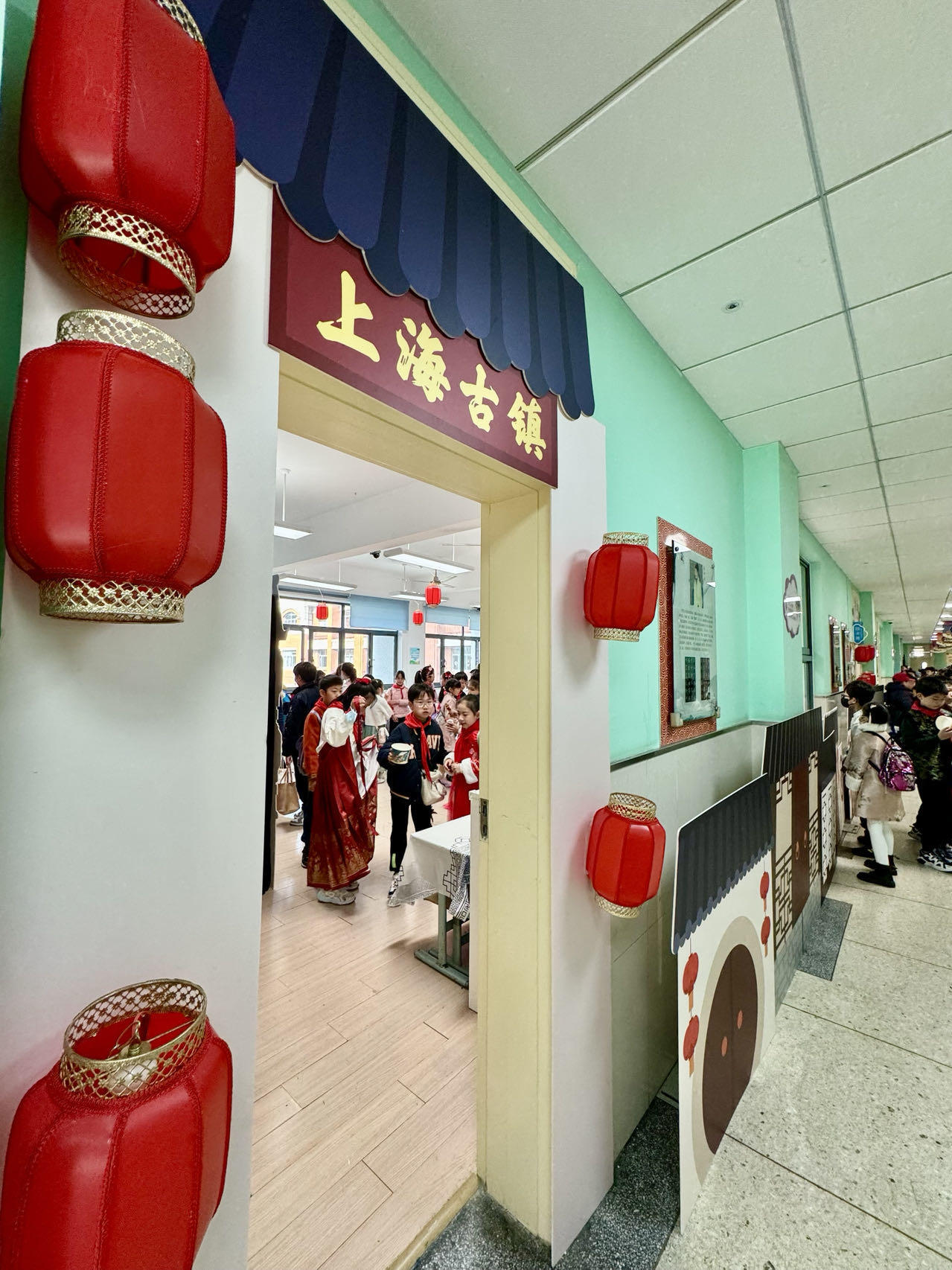 今天是2023年的最后一个工作日,黄浦区卢湾一中心小学的孩子们也迎来了他们津津乐道的年末迎新大戏——“中国人过中国节”活动。这是该活动在学校举办的第19个年头,此次以“阿拉屋里来白相”为主题,老师和家长志愿者们精心策划布置,将38个教室和六楼大礼堂装扮一新,为孩子们呈现了一场沉浸式的上海文化体验。