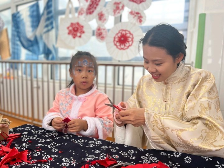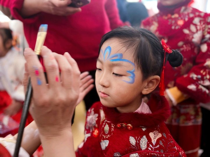 孩子们包饺子、滚汤圆、蒸花馍、做年糕,剪窗花,写对联,贴福字,画祥龙……喜庆的福字映衬出一张张甜甜的笑脸。