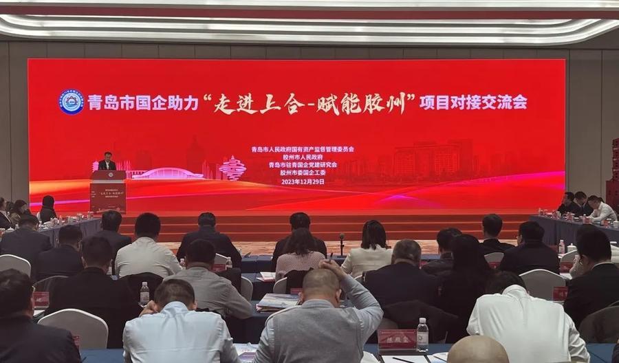 12月29日,青岛市国资委、驻青国企党建研究会在胶州举办央企国企“走进上合—赋能胶州”项目对接交流会,贯彻落实市委十三届四次会议暨市委经济工作会议精神,促进驻青央企省企与地方国企交流和融合发展,在助力上合示范区建设,推动区域协调发展中“打头阵、当先锋”。部分驻青国企、市属国企、各区市属国企和区市有关部门负责人等180余人参加活动。
