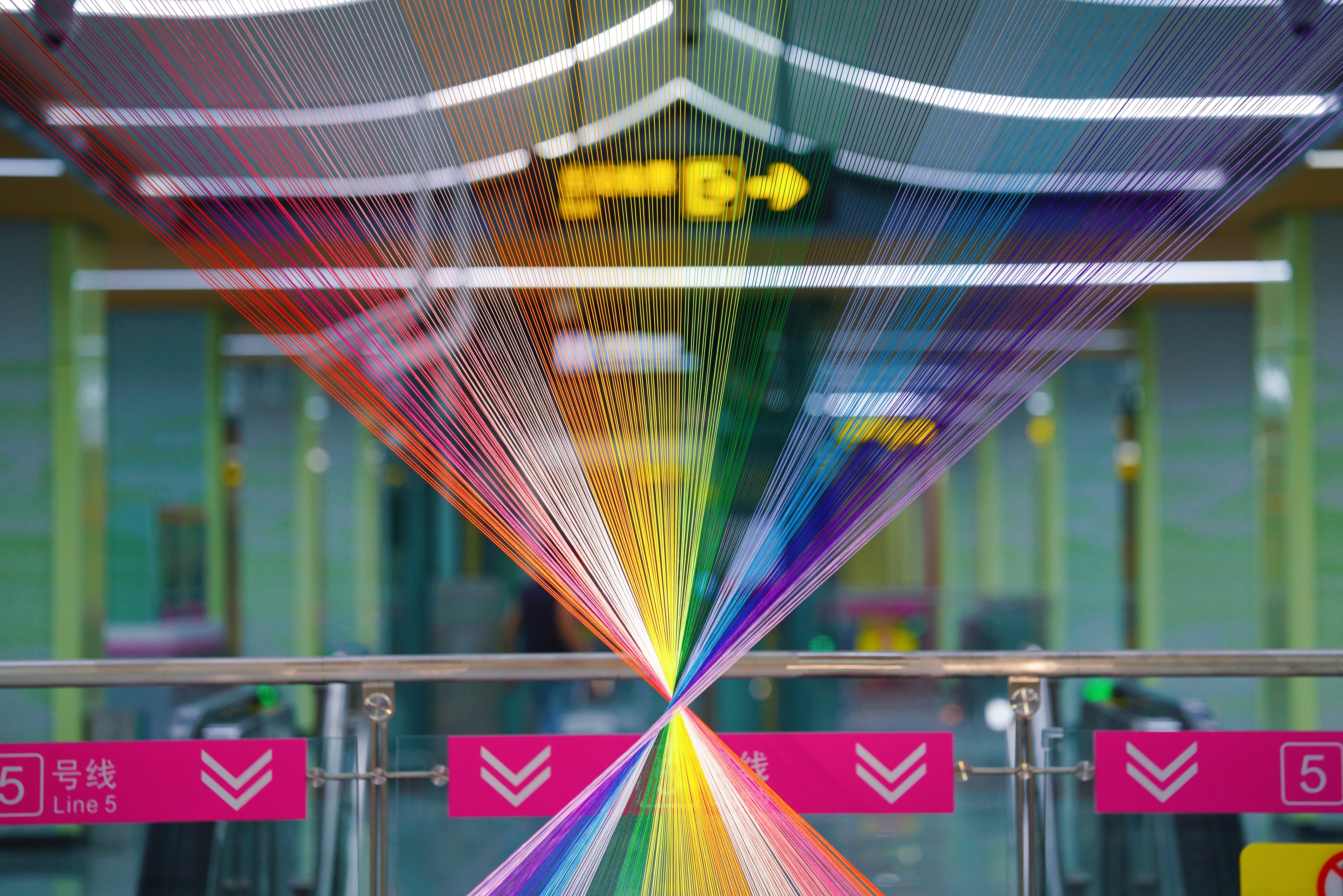 苏州地铁5号线索山桥西站展现“苏绣”文化。