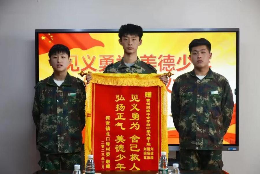 3月11日中午,家住青州市何官镇北口埠村的刘建麟、谢瑛泽、刘宗其三名学生在经过一户人家时,发现屋顶和门缝冒烟,三人觉得可能着火,推门时却发现房屋上锁,情急之下,三人找了邻居大爷把门锁撬开,随后冲进房内寻找被困人员。火势凶猛,他们冲进火场将老婆婆搀扶出房屋,将平时所学活学活用,冒险救下被困老人。