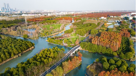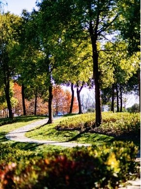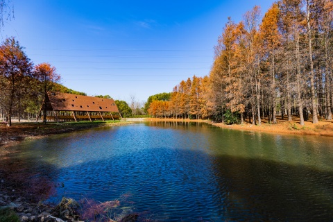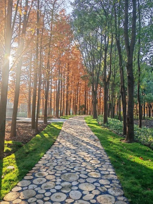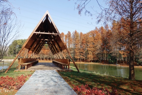 500米杉林间的穿梭步道与纳塔栎、乌桕、榉树、朴树等色叶乔木,共同打造清朗明媚的秋色。