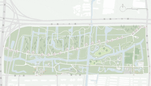 1公里樱花大道+海棠城市界面,微风和煦,春意盎然,打造落英缤纷的春景。