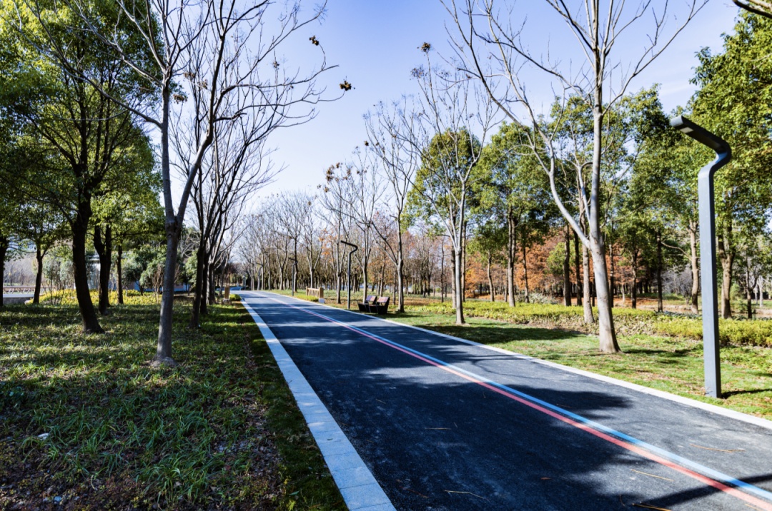 以“骑行+跑步+慢步道”组合的形式,构建绿道骨架,总骑行线长度1.2公里。未来还将与沿北公园、沔西公园的绿道无障碍连通,完善浦东环上“慢行系统”。同时增加标识标牌、驿站、LOGO景墙等,结合植物景观提升,打造特色骑行游线。