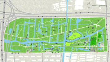 靠近居住区的休闲运动片区内优化林相,适当降低乔木密度,着重打造全龄乐园区和体育竞技区,为市民营造更为舒适的运动休闲环境。