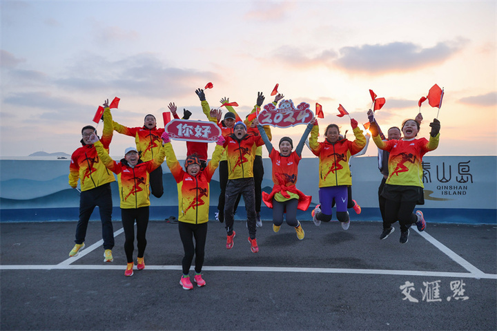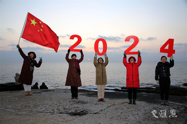 1月1日,市民来到在连云港市连云区羊山岛的海边,伴随着冉冉升起一轮红日,手举五星红旗,摆出“2024”造型,迎接新年的到来。朱华南 摄 视觉江苏网供图