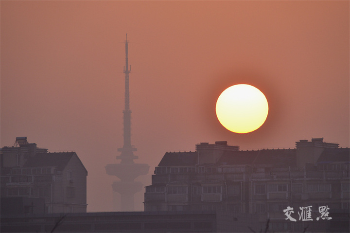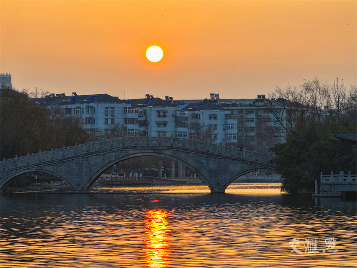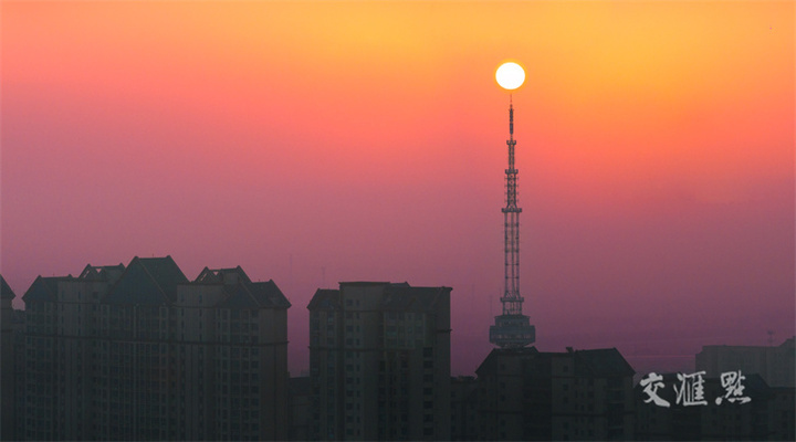 在南通市通吕运河畔2024年第一个日出,远处是南通地标性建筑南通电视塔。陈德军 摄 视觉江苏网供图