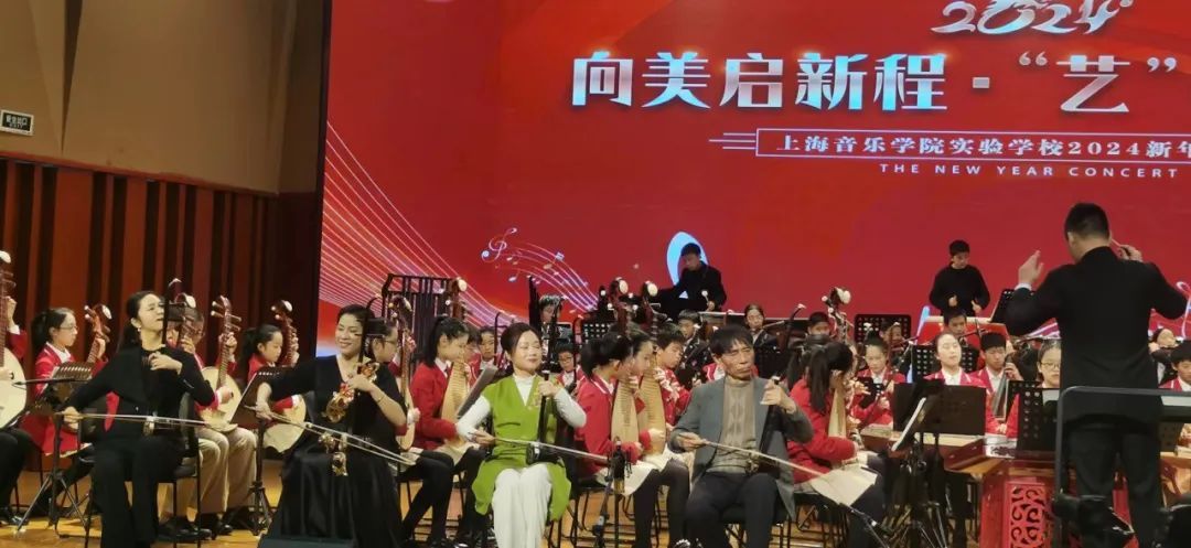 当天,主题为“向美启新程,‘艺’心向未来”的上海音乐学院实验学校2024新年音乐会在校园内举行,音乐大厅座无虚席,嘉宾和部分师生、家长共同见证了这场文化与艺术的盛宴。杨浦区融媒体中心进行了现场直播,姐妹学校和社会友好人士数万人次在线收看。