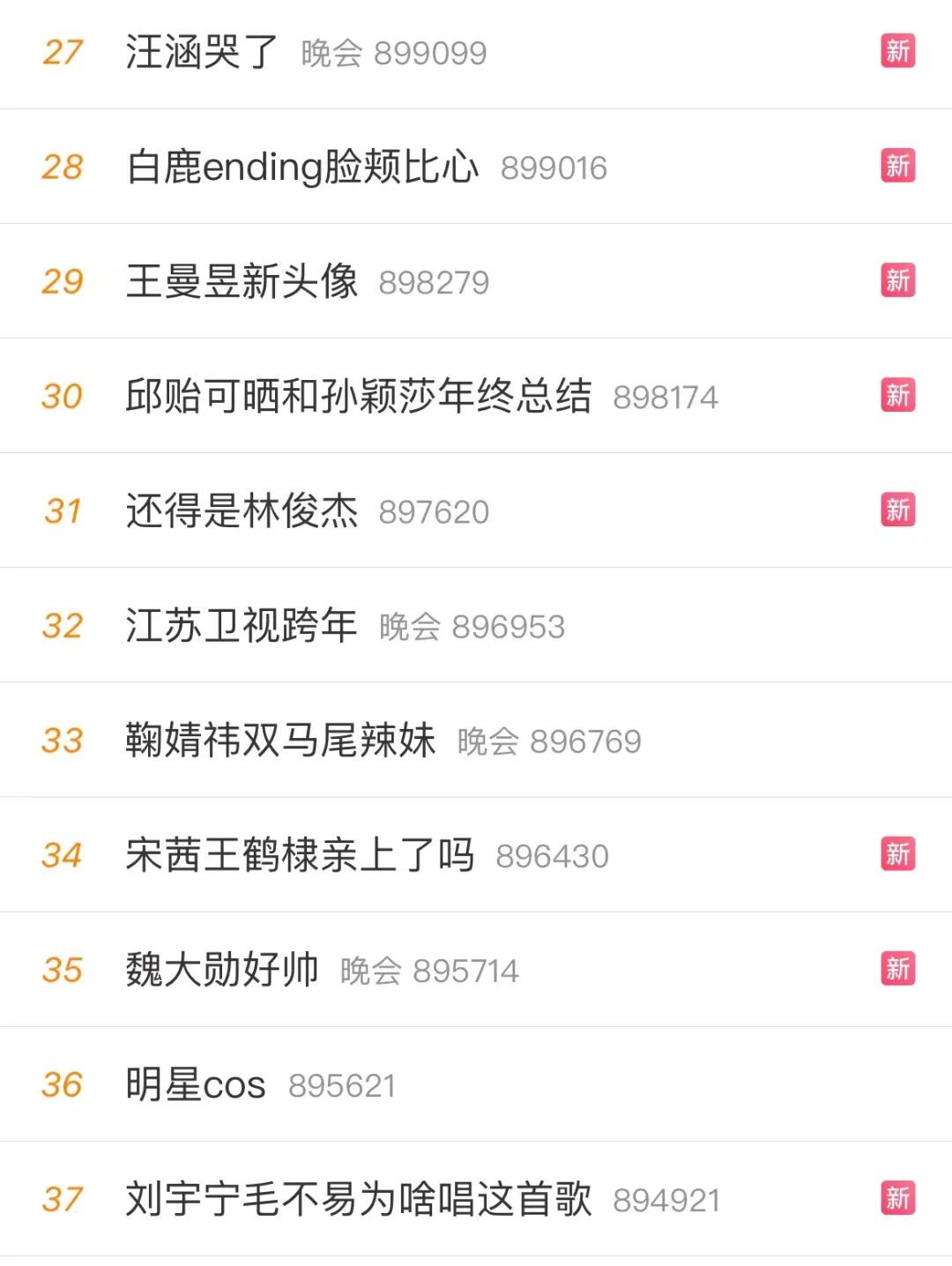 微博热搜榜也被跨年演唱会霸榜刷屏。