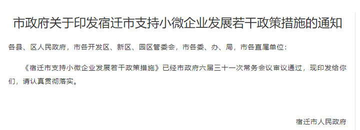 为全面激发小微企业活力,宿迁市拿出了许多“真金白银”,分别推出完善“市企贷”政银合作产品、提供融资担保支持、加大金融支持力度、落实减半征收“六税两费”、落实小型微利企业减免企业所得税政策等5条。其中,在落实小型微利企业减免企业所得税政策上,明确对小型微利企业减按25%计算应纳税所得额,按20%的税率缴纳企业所得税政策,延续执行至2027年12月31日。