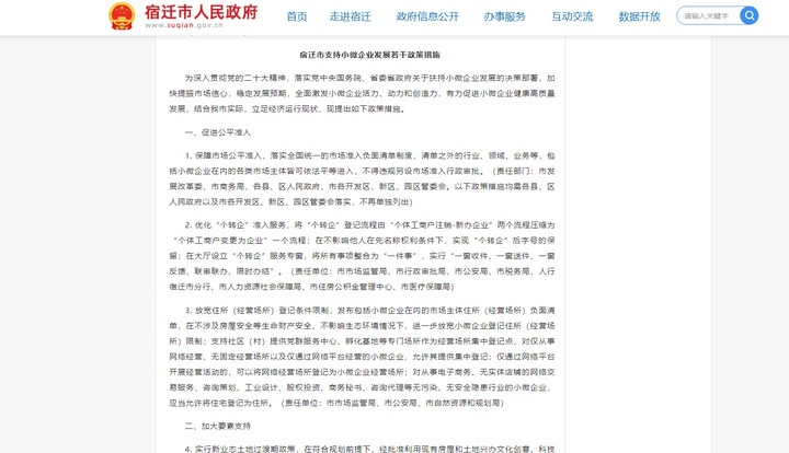 交汇点讯 促进公平准入、加大要素支持、强化财税金融扶持、推动创业创新、优化营商环境……1月2日,宿迁市发布《宿迁市支持小微企业发展若干政策措施》,明确推出五个方面共24条重磅政策,全面激发小微企业活力、动力和创造力,有力促进小微企业健康高质量发展。