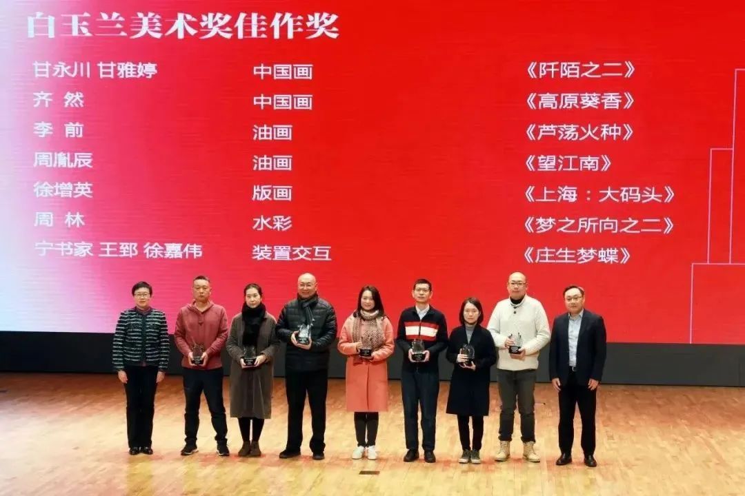 本次展览共征集作品2342件,经初评、复评和评奖三轮评审,共遴选入展作品517件,从中评选出“白玉兰美术奖”优秀奖6件、“白玉兰美术奖”佳作奖7件、“沈柔坚艺术基金奖”7件。其中“白玉兰美术奖”优秀奖是本届大展的最高奖项,包含中国画、版画、水彩、雕塑、综合材料绘画、连环画六个画种,每个画种只评选出一件作品。 上海大学上海美术学院师生喜获丰收,共有96件作品入选,接近参展作品总数的1/5,其中7名师生获奖,超过获奖总数的1/3。这是上海美术学院在上海美术大展上获奖和入选作品最多的一次。获得白玉兰奖的中国画和油画作品将直送第十四届全国美展参评。 上海大学上海美术学院卫昆、唐天衣、高川获最高奖“白玉兰美术奖”优秀奖,占优秀奖总数的1/2。 齐然、周胤辰、甘雅婷(本科生)获“白玉兰美术奖”佳作奖。 韦萍获“沈柔坚艺术基金奖”。