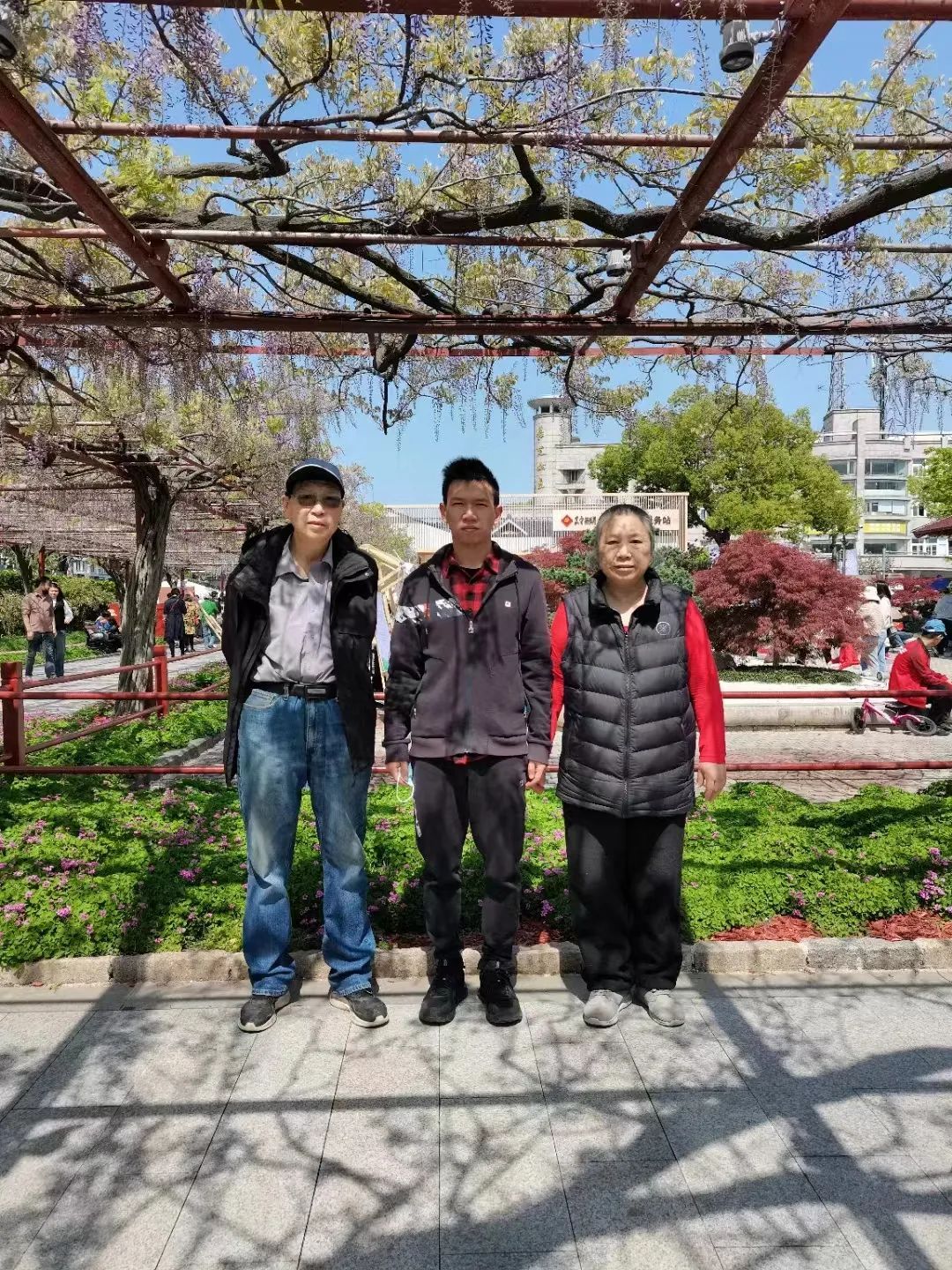 去年4月,孙义哲一家三口在认建认养16年的嘉定紫藤园合影