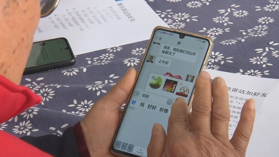 老年学员周国荣说:“我(现在)发红包的时候,手机发过去的。我对孙子孙女说,我红包发了,你们去收,他们就手机上回,谢谢爷爷,我们都很开心。买菜的时候,到超市也好、到菜场也好,我们手机一扫就可以了,很方便的。我们唱歌的时候,还能录音或者发给朋友。”